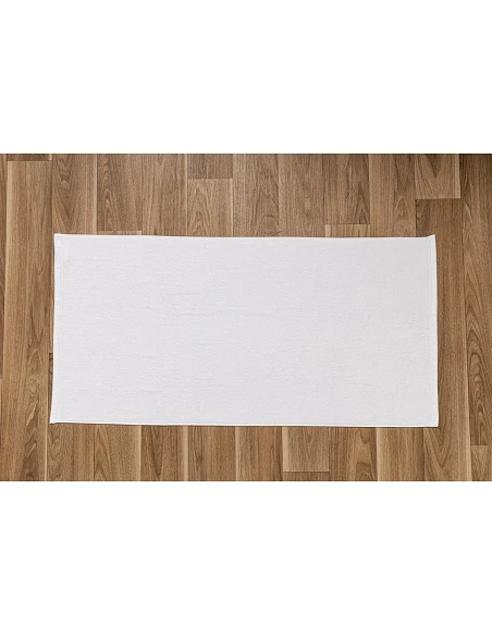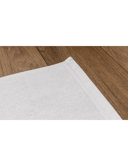 Alfombra con 750 gr./m2, desenvolvida especificamente para hoteles, spa y centros de estética, por ello el dobladillo va cosido duplo, solidez al lavado hasta 60°, hilo duplo 24/2 rizo, alta absorción y suavidad.