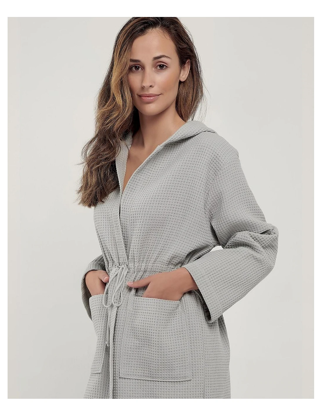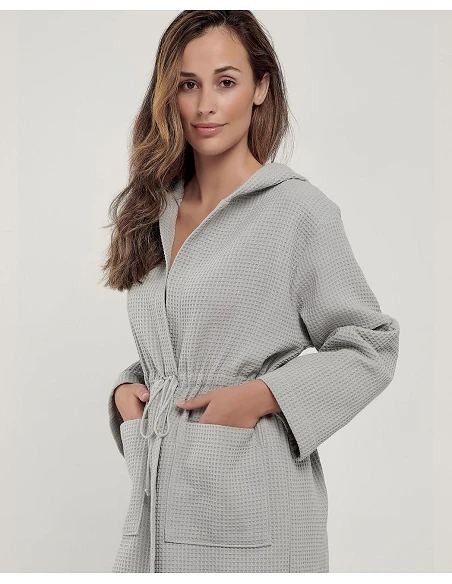 Albornoz 100% algodón, tejido tipo nido de abeja, ligero con 300 gr./m2 .