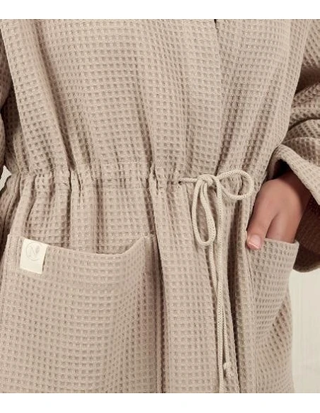 Albornoz 100% algodón, tejido tipo nido de abeja, ligero con 300 gr./m2 .