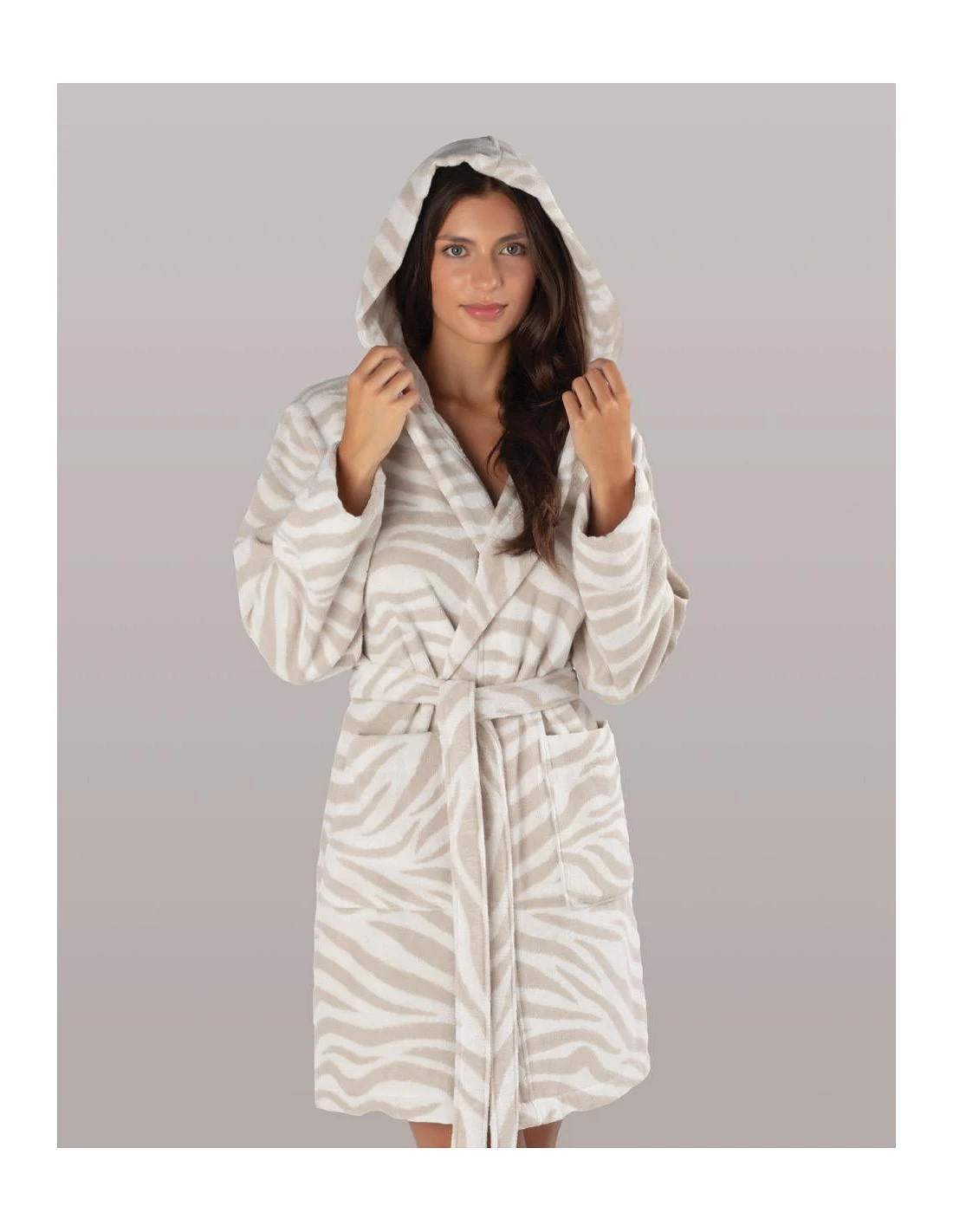 Albornoz con bolsillos, cinturón y presilla para colgar.