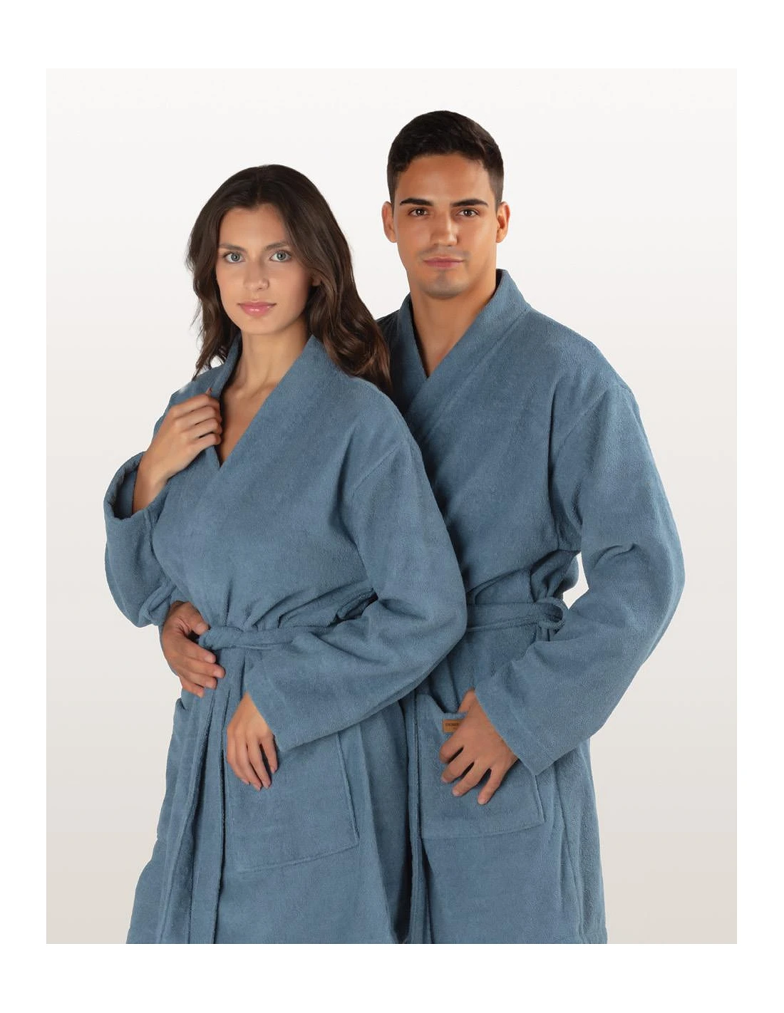 Albornoz con bolsillos, cinturón y presilla para colgar.