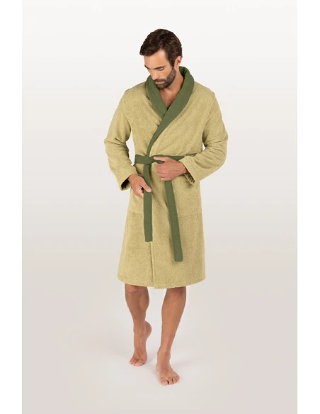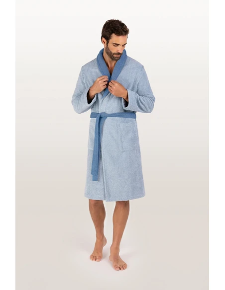 Albornoz de Lasa - Home, con solapa, bolsillos, cinturón y presilla para colgar. Albornoz 100% algodón con 380 gr./m2