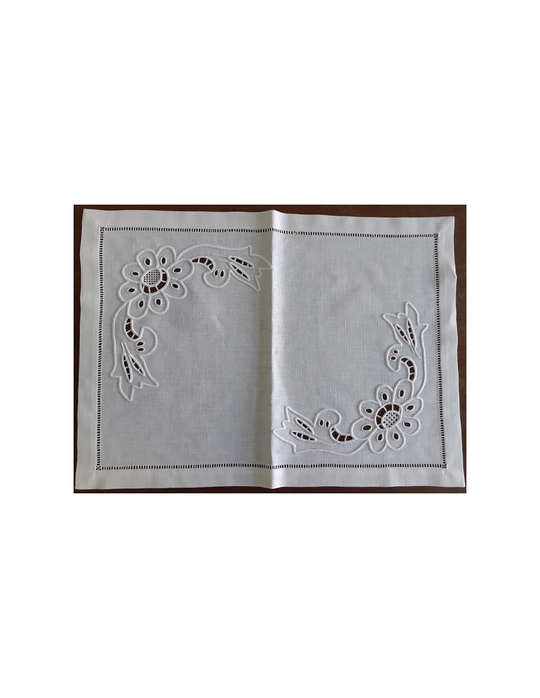 52x37 cm - Mantel individual 100% lino bordado a mano