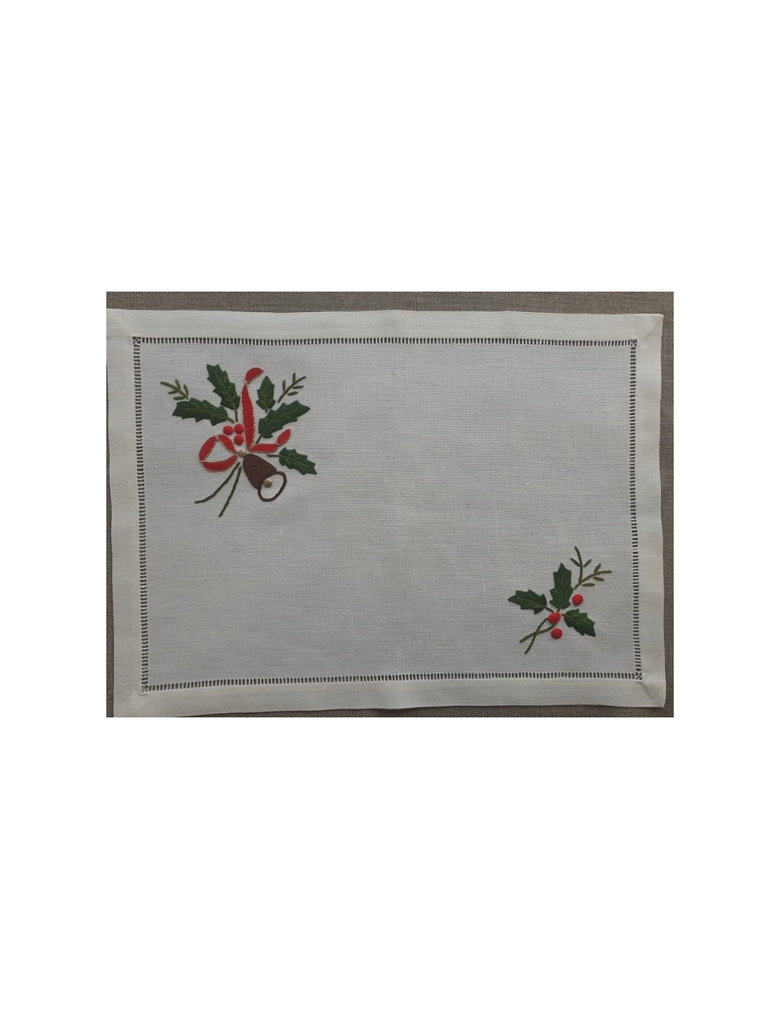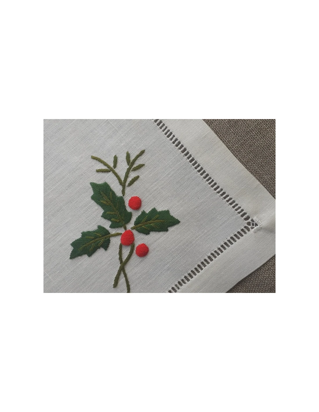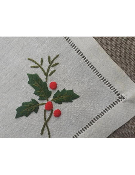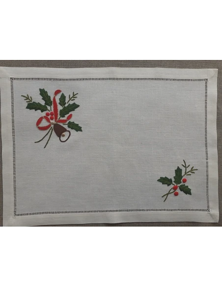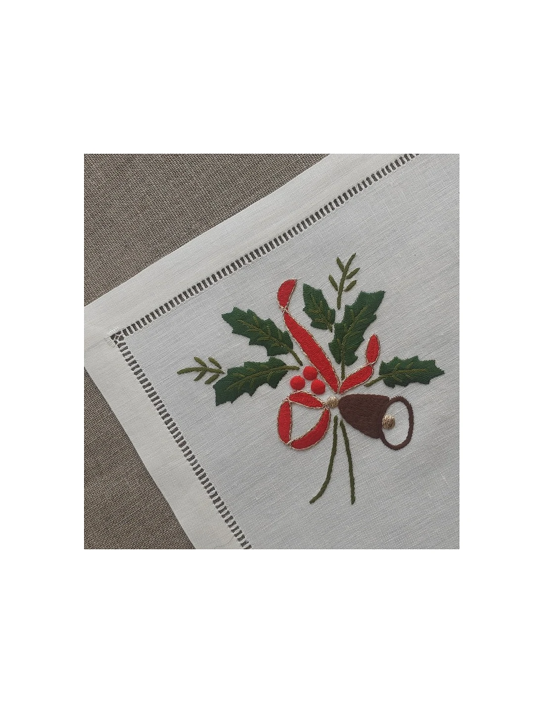 Mantel individual de lino + servilleta de lino - Bordado A Mano de Navidad