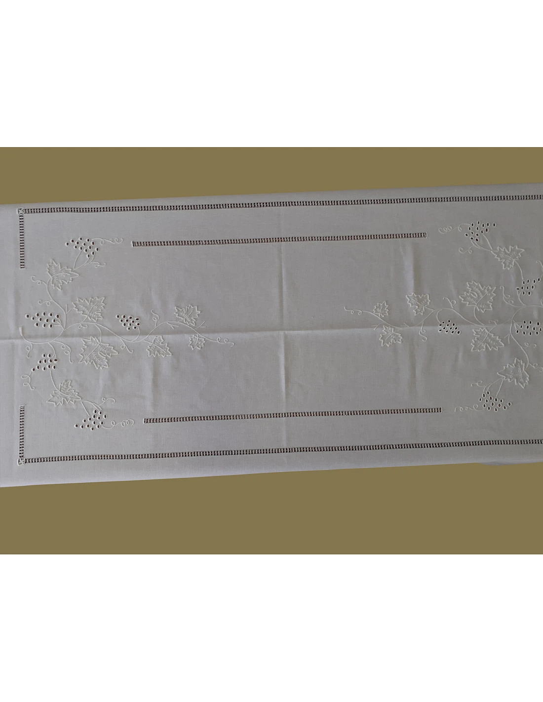 Mantel hecho a mano, 60% lino portugués y 40% algodón, mantel diseño hojas, todo bordado a mano sobre cartoncillo, con hilos de algodón. 2 Vainicas abiertas (Bainha de molho) a todo el alrededor del mantel.