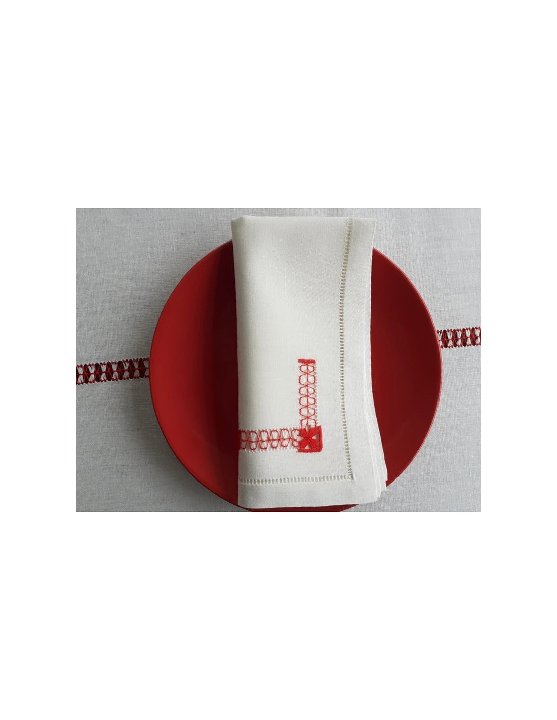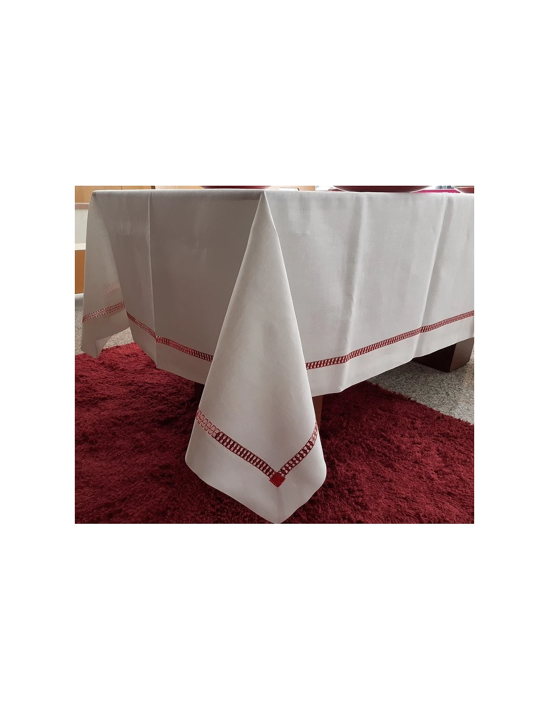 180x270 cm - Manteles de lino Bordado A Mano - Mantel bordado a rojo para Navidad