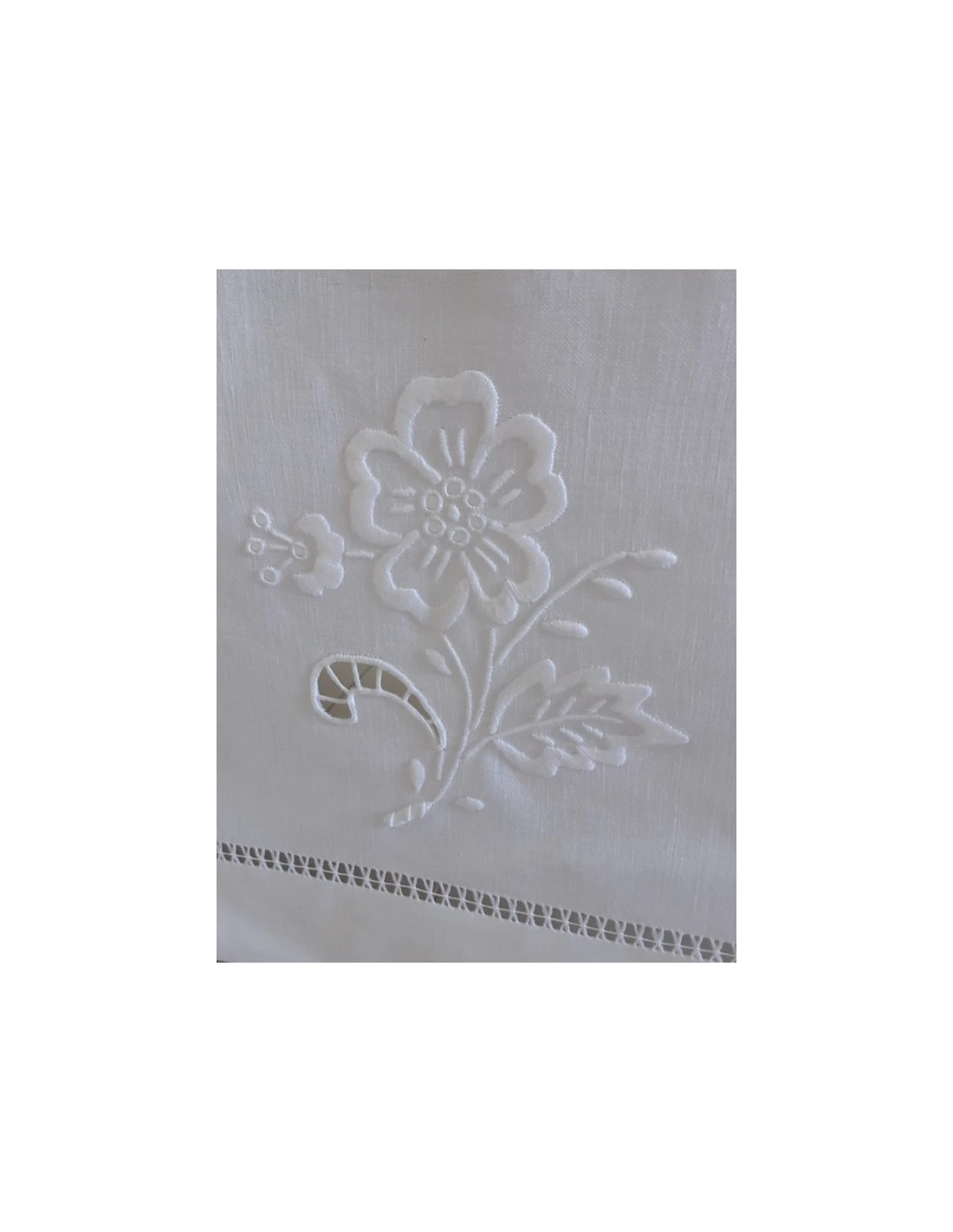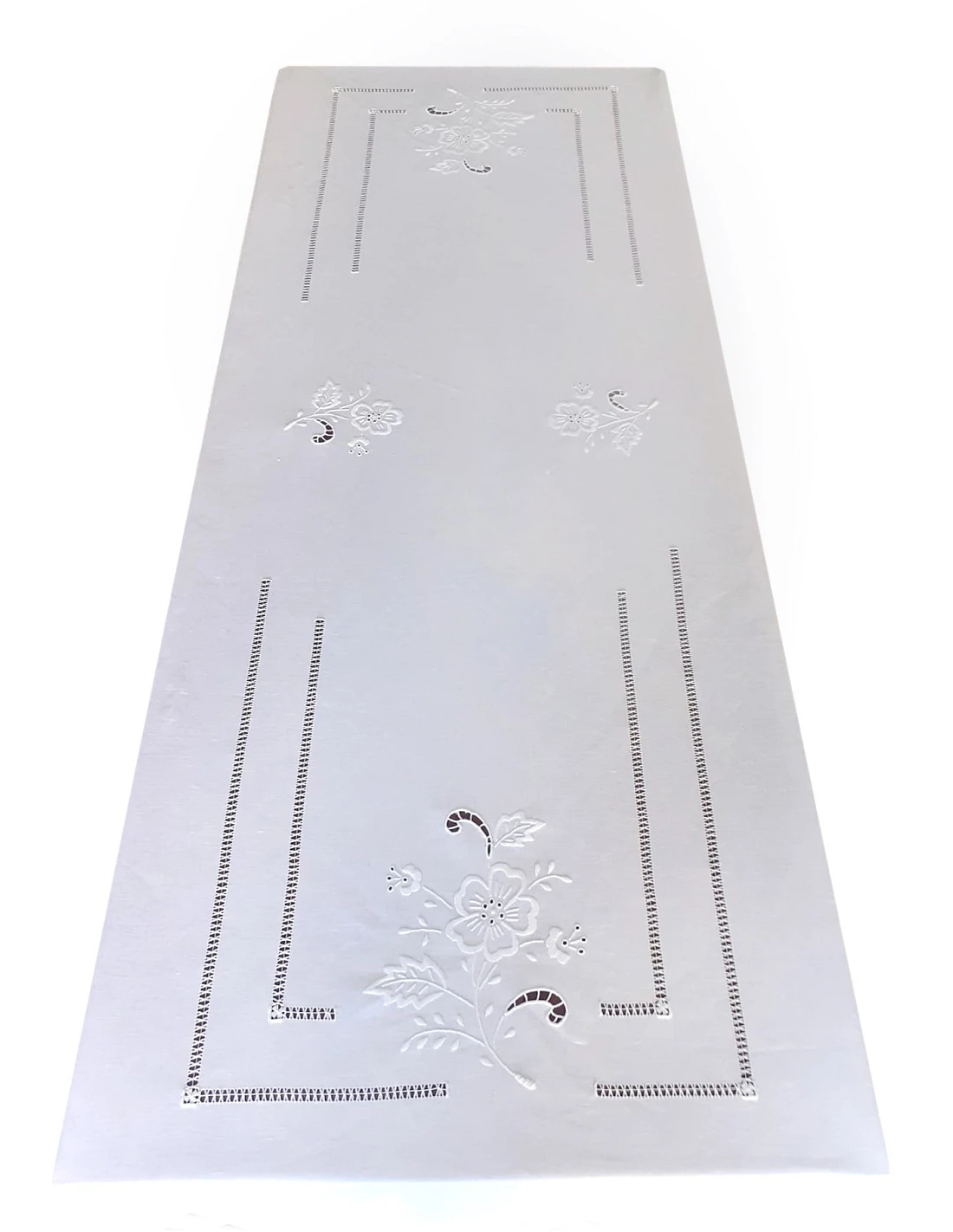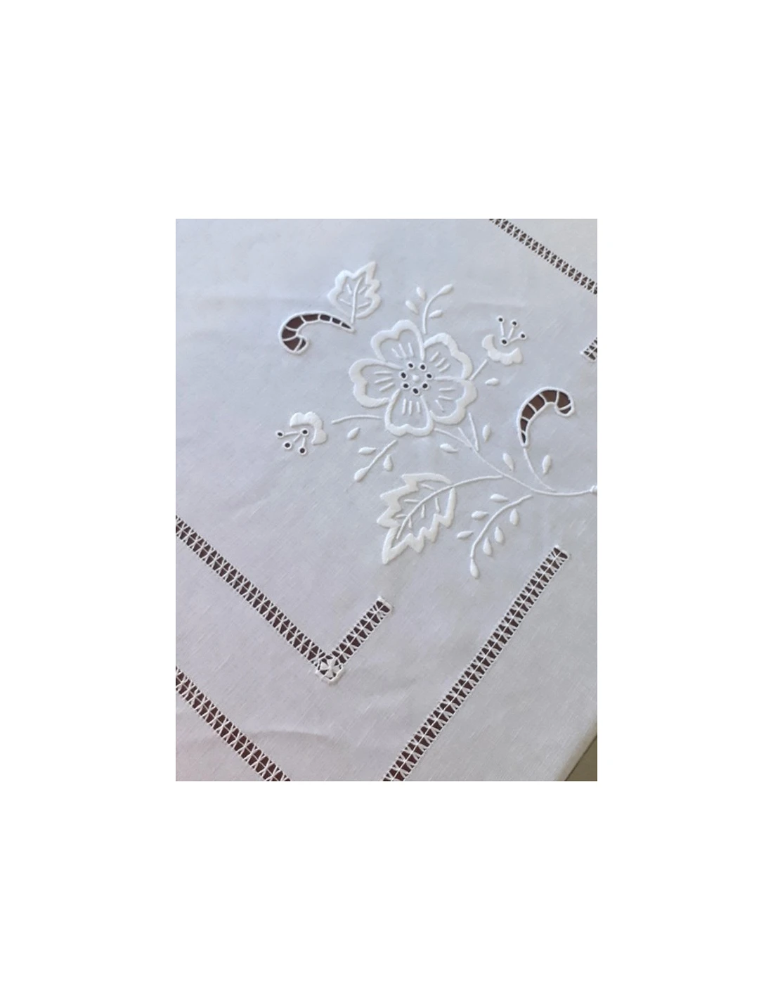 170x350 Mantel de lino Bordado A Mano - Mantel bordado richelieu C/ Flor Blanco