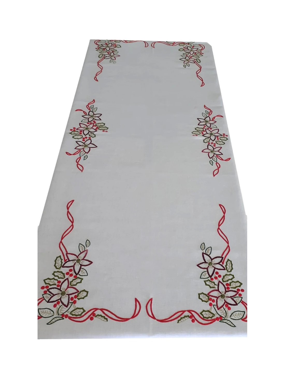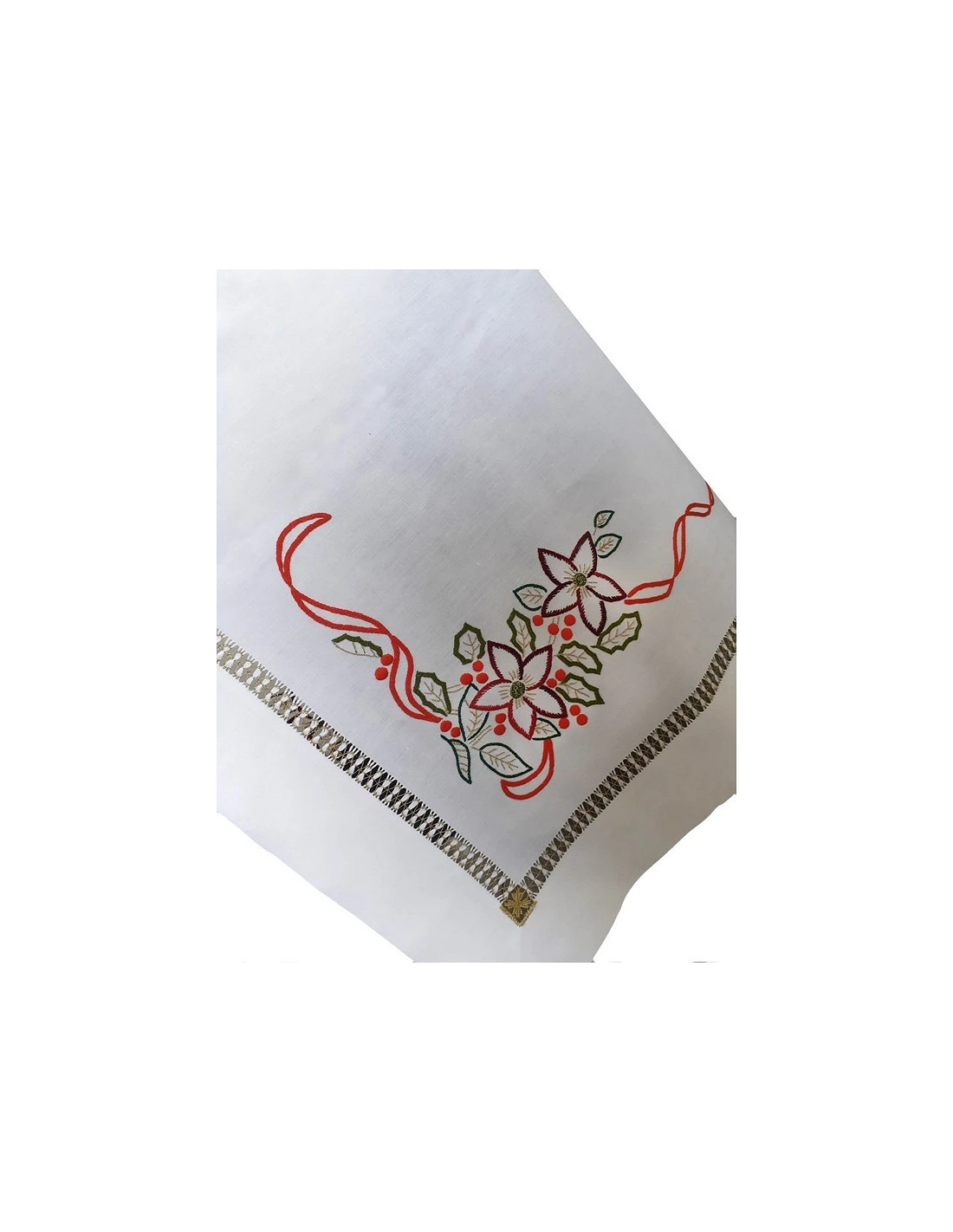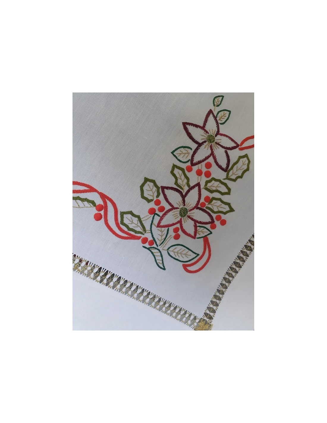 190x350 cm Mantel de lino Bordado A Mano - Mantel bordado Creative Azevinho / Acebo
