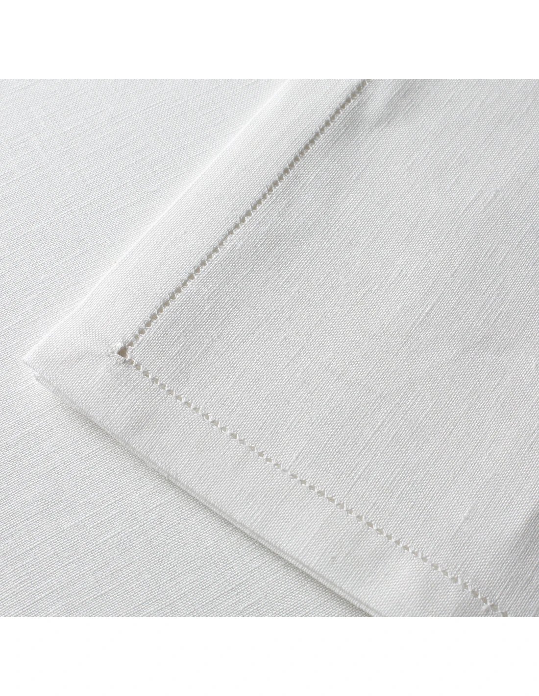 Mantel con 4 esquinas acabadas en (canto inglés). Color blanco.