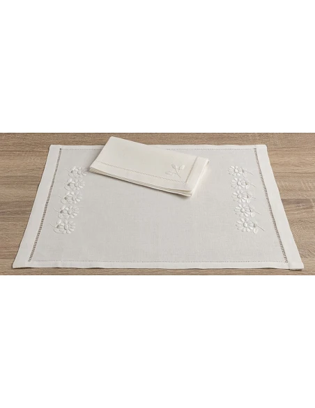 Mantel individual de lino + servilleta de lino - Bordado A Mano