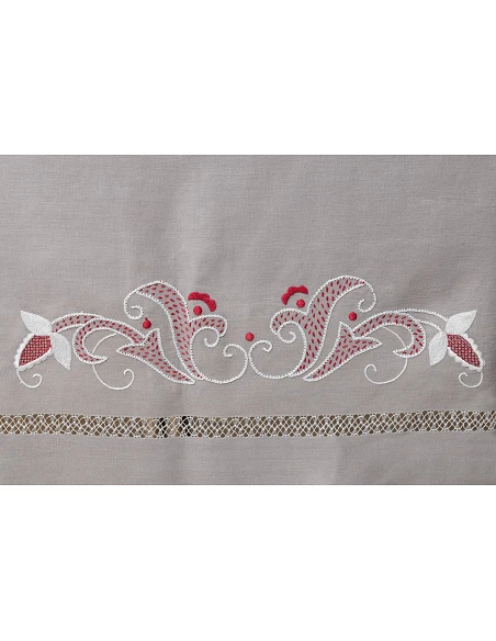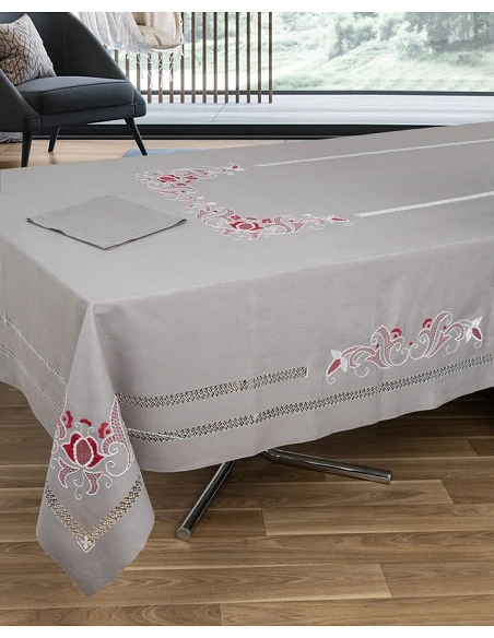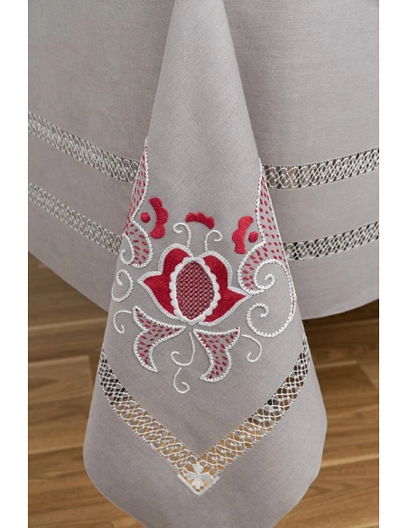 180x360 Mantel de lino Bordado A Mano + 12 servilletas 50x50 cm