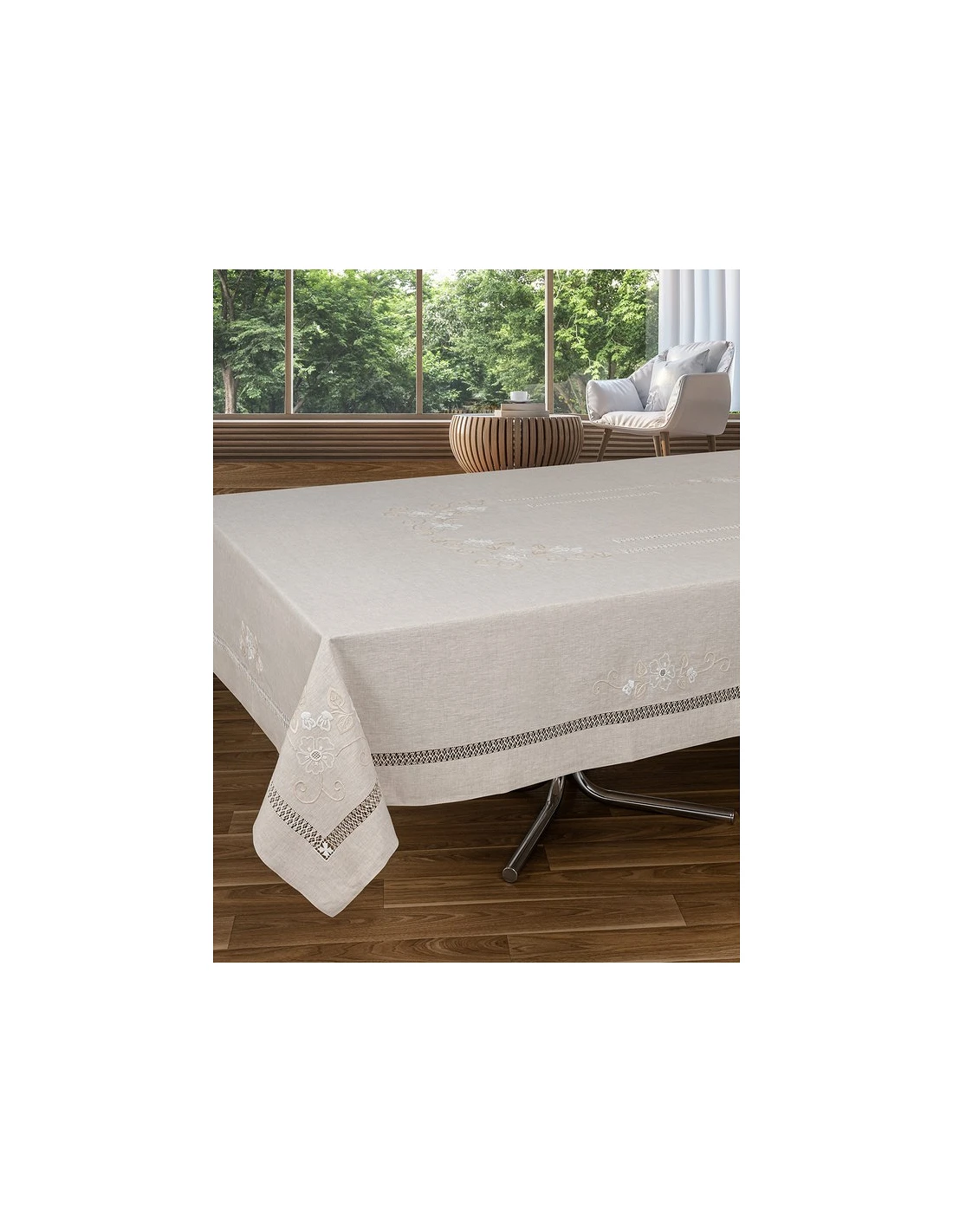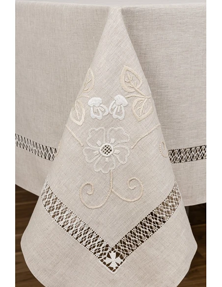 180x350 Mantel de lino Bordado A Mano - Mantel bordado Bainha Gracinha