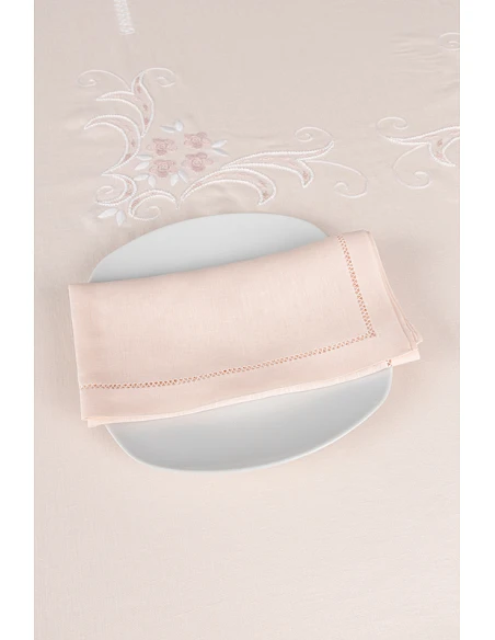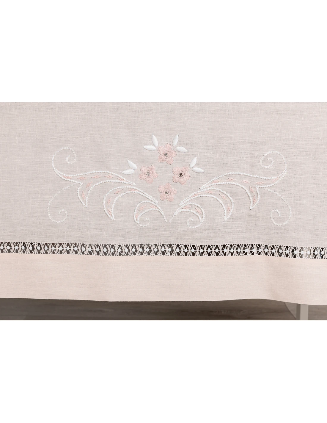 180x350 Mantel de lino Bordado A Mano + 12 servilletas