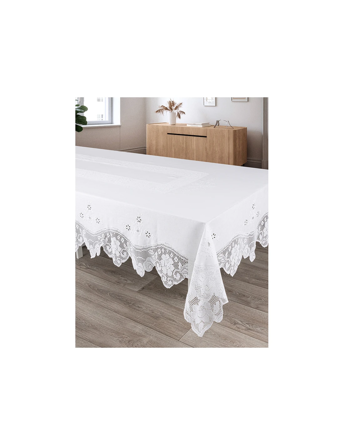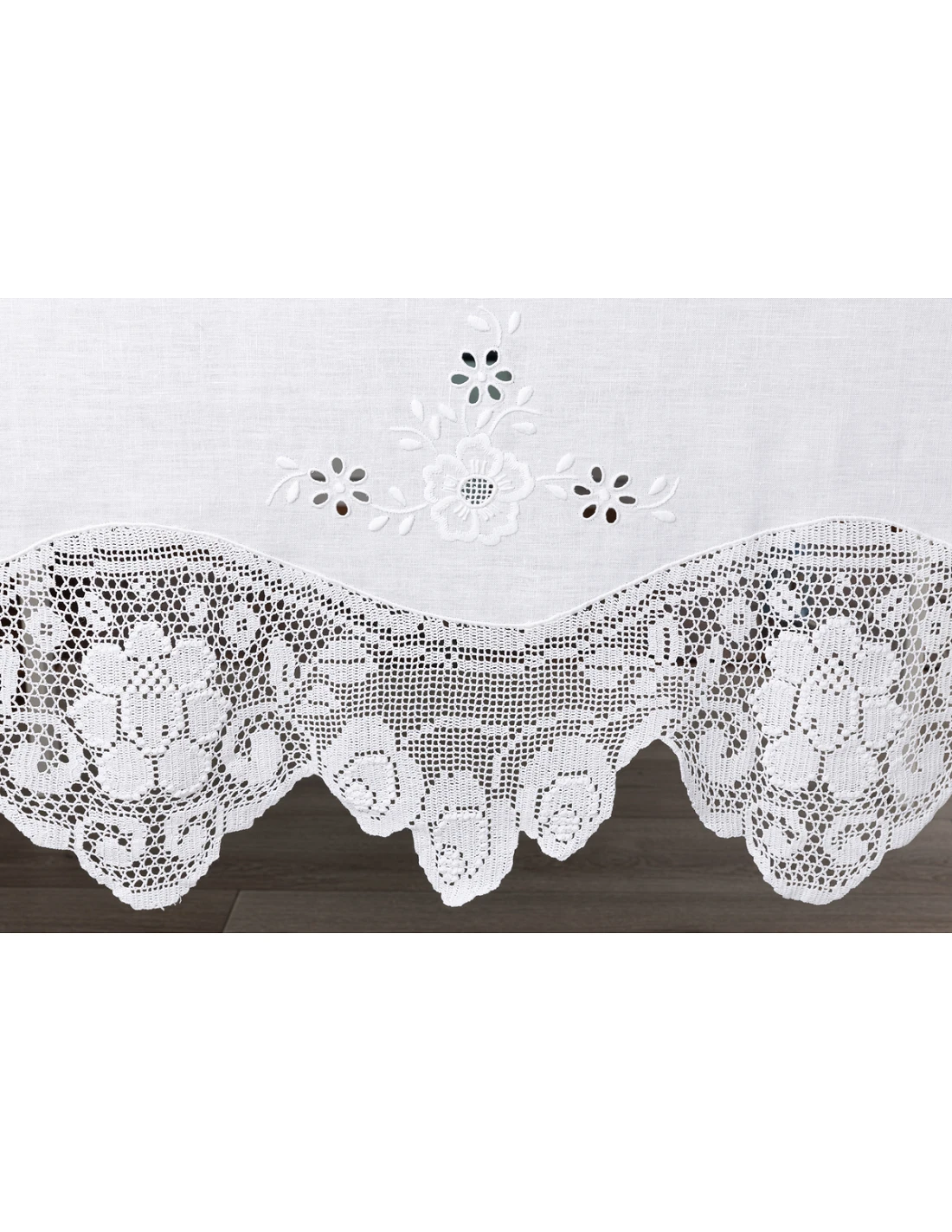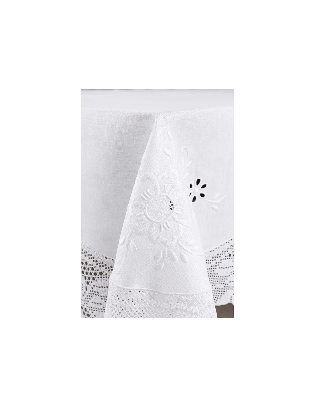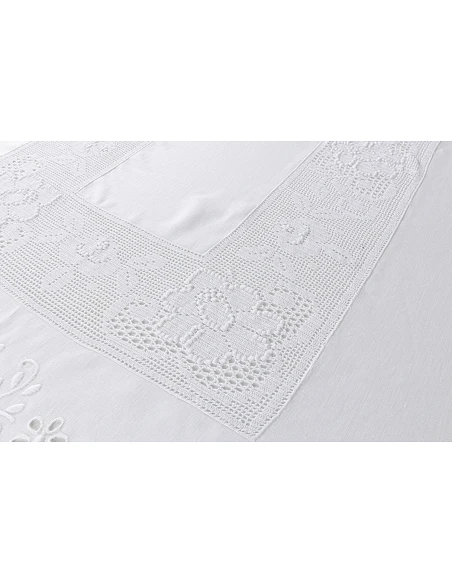 180x350 cm - Mantel de lino Bordado A Mano C/ puntilla de ganchillo