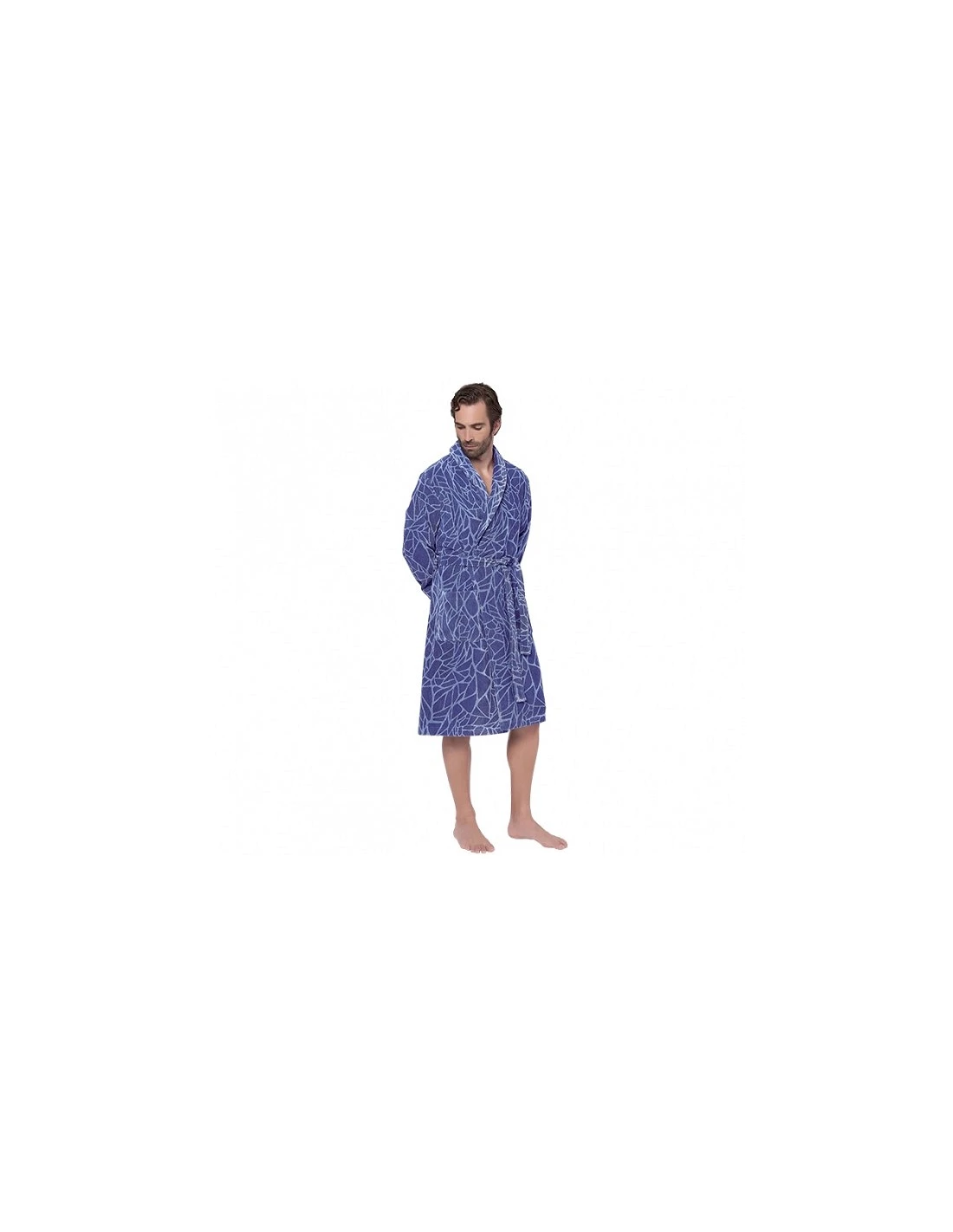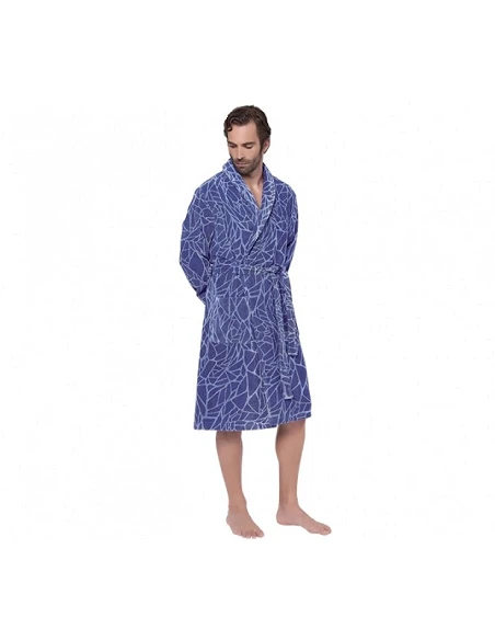 Albornoz Lasa-Home, solapa, bolsillos, cinturón y presilla para colgar.