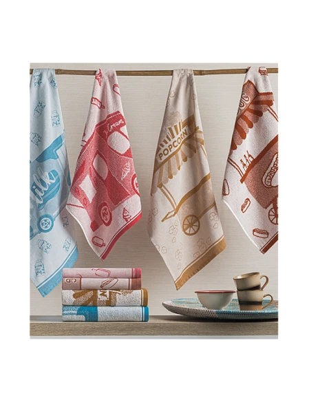 Línea FEIRA con 4 colores a elegir, paño de cocina en tela 100% algodón.