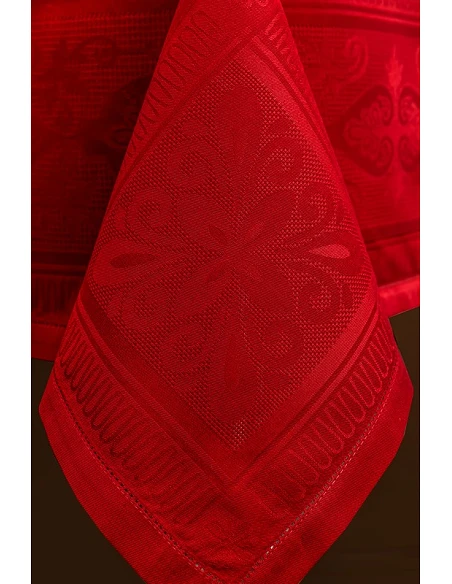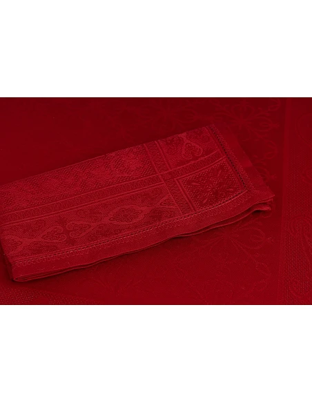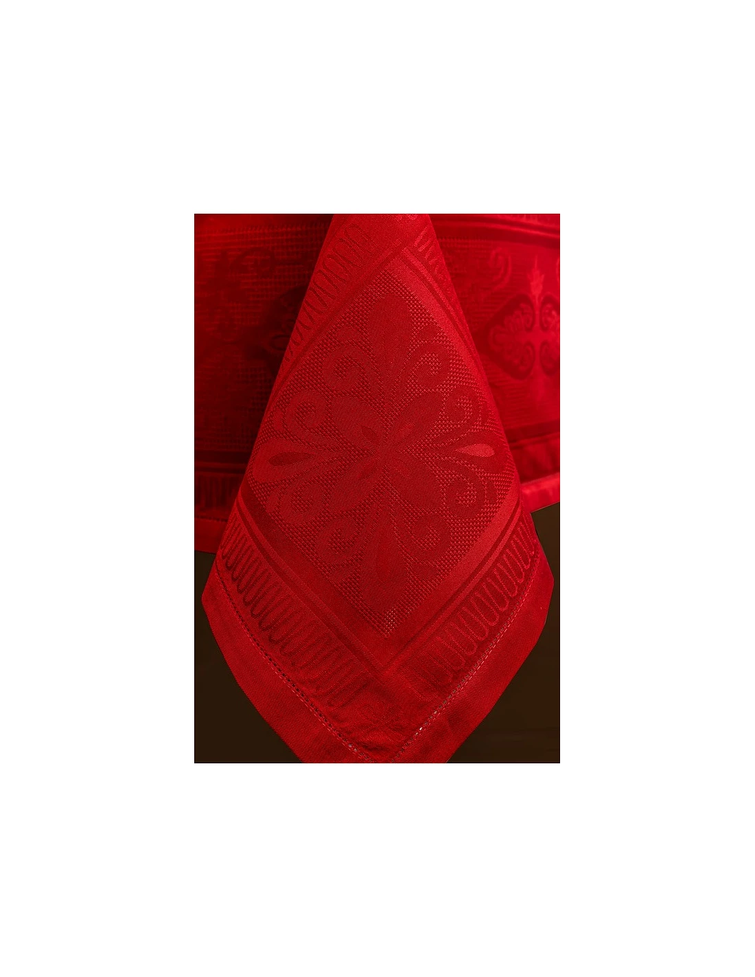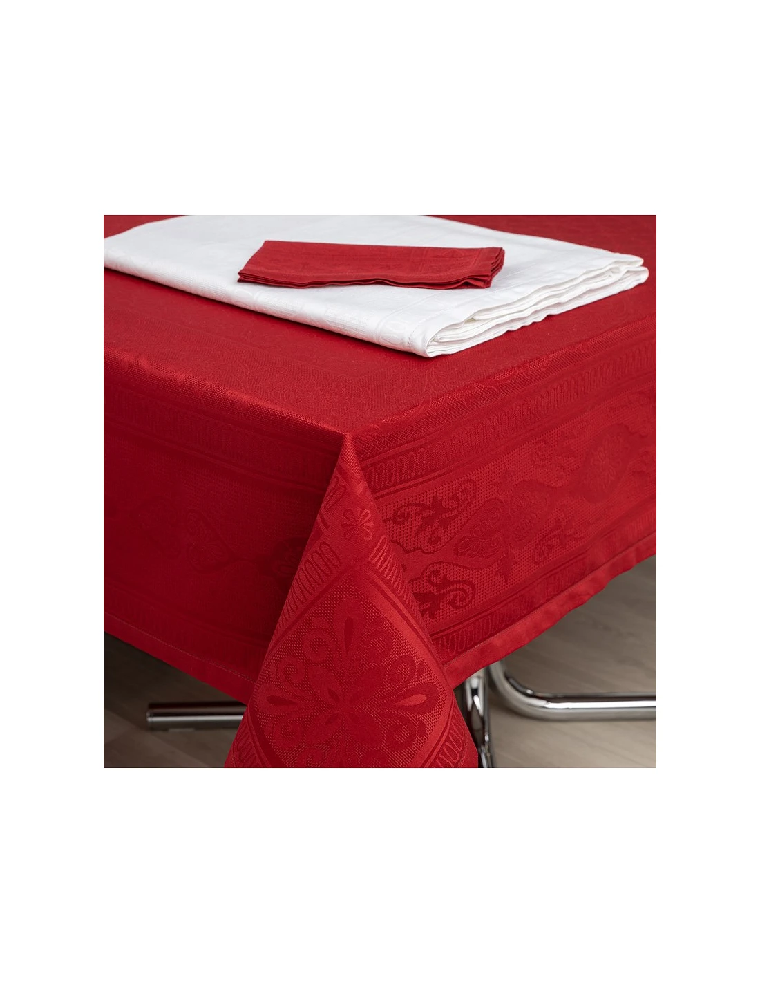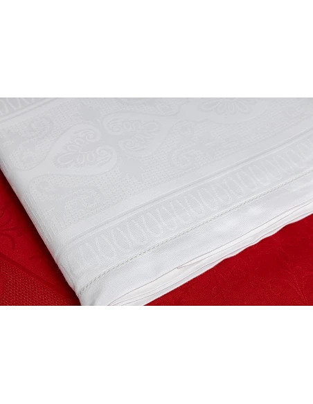 Línea ARGENTO en Damasco, manteles y servilletas con vainica junto al dobladillo, 100% algodón, tejido en jacquard.