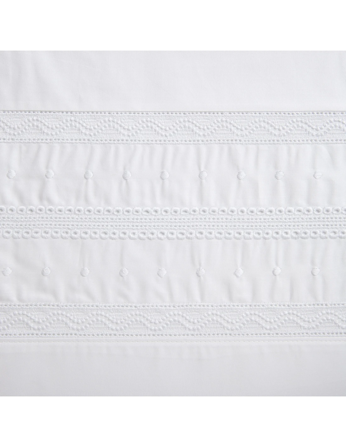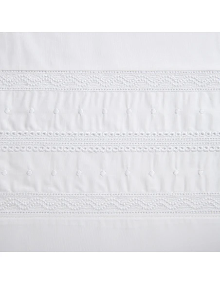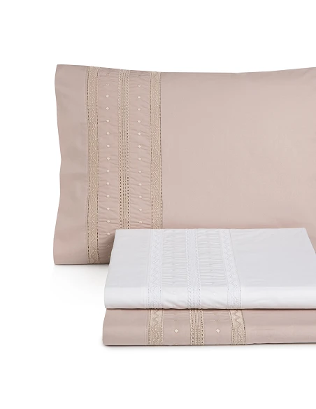Sábana encimera y fundas de almohadas con bordado triplo aplicado.