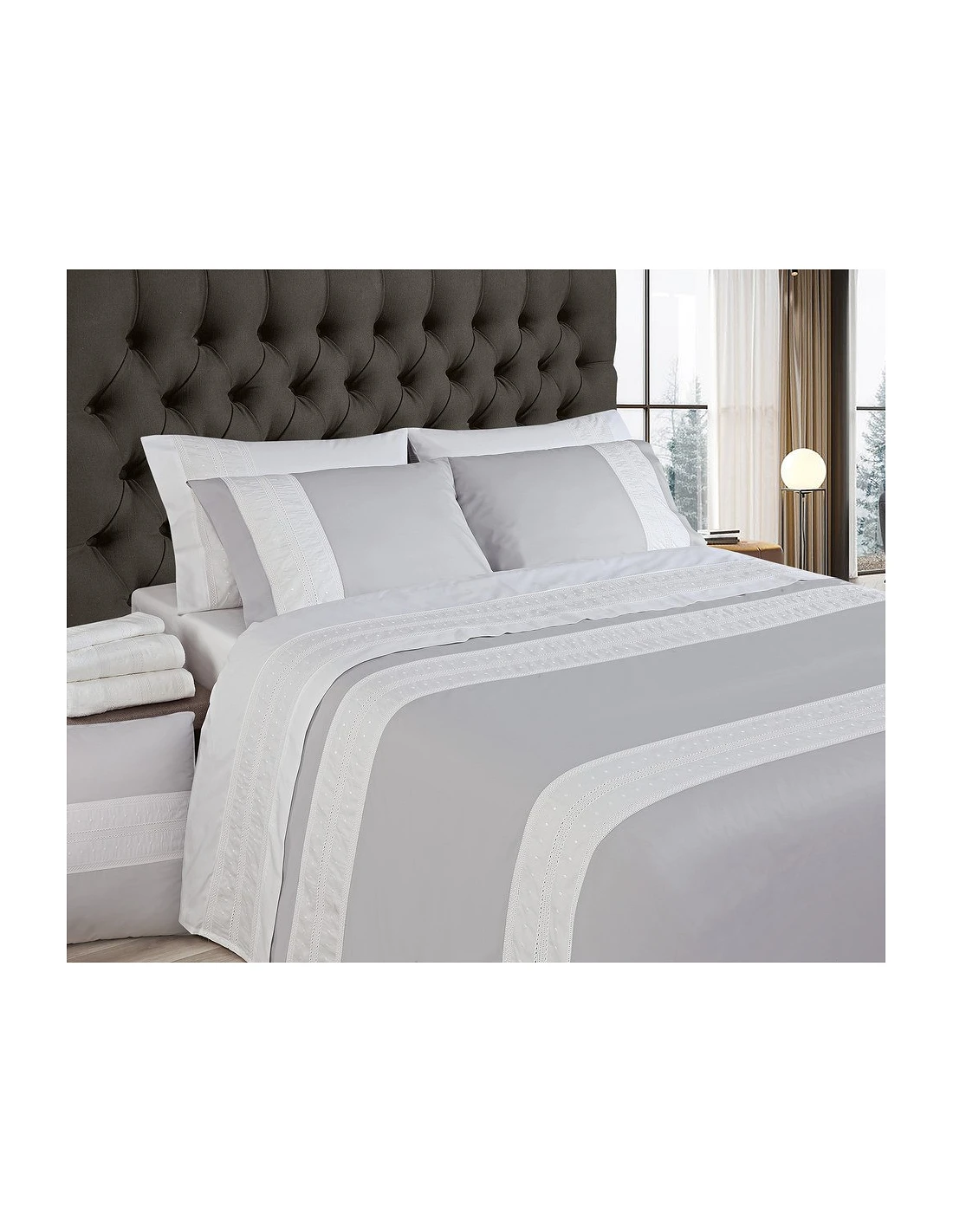 Sofisticada y elefante colección Triplo fabricada en atelier con gran atención a los detalles, para interiores con clase y personalidad. Tejido algodón peinado percal de 200 hilos.