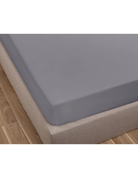 Sábana bajera ajustable 150x200 cm + 30 cm - Sábana bajera cama 150 - Sábana gris algodón percal