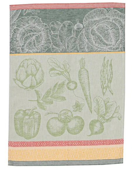 Paño de cocina en tela 50% algodón 50 % lino, P/ colgar, diseño en jacquard.
