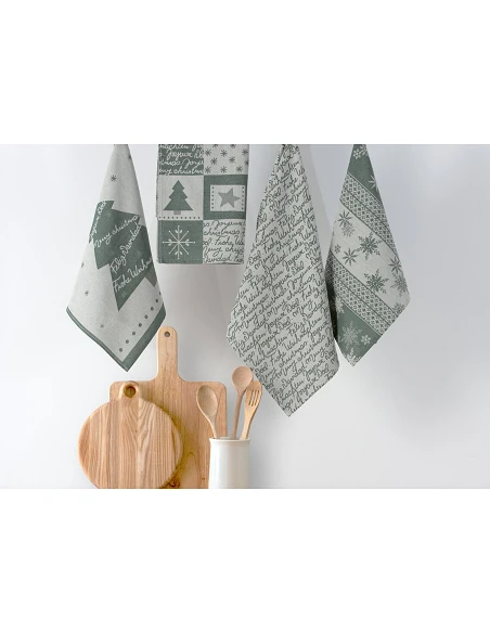 Línea CHRISTMAS, pack de 4 paños de cocina 100% algodón.