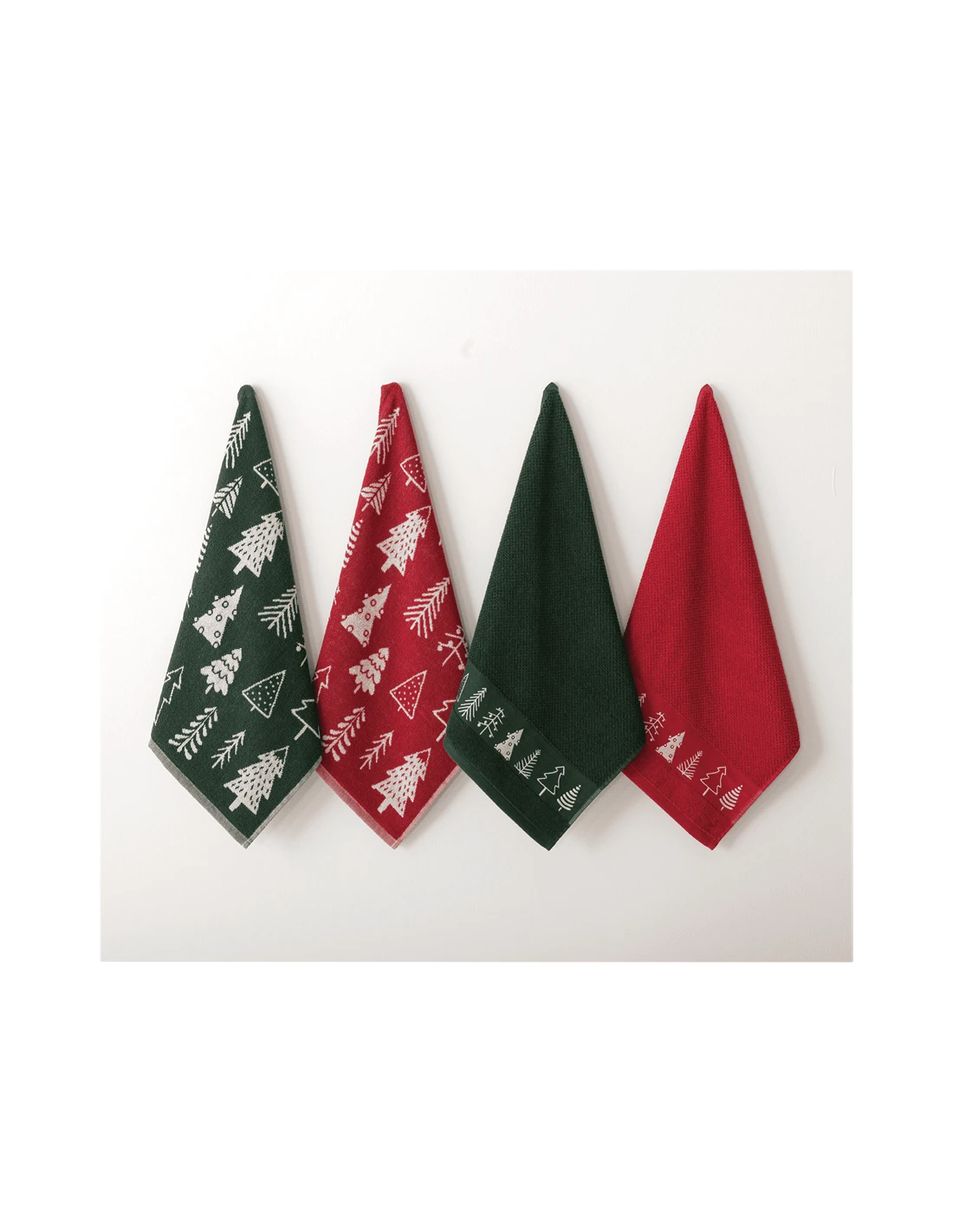 Línea festive Tree, 2 panos verdes + 2 panos rojos, paño de cocina 100% algodón rizo.