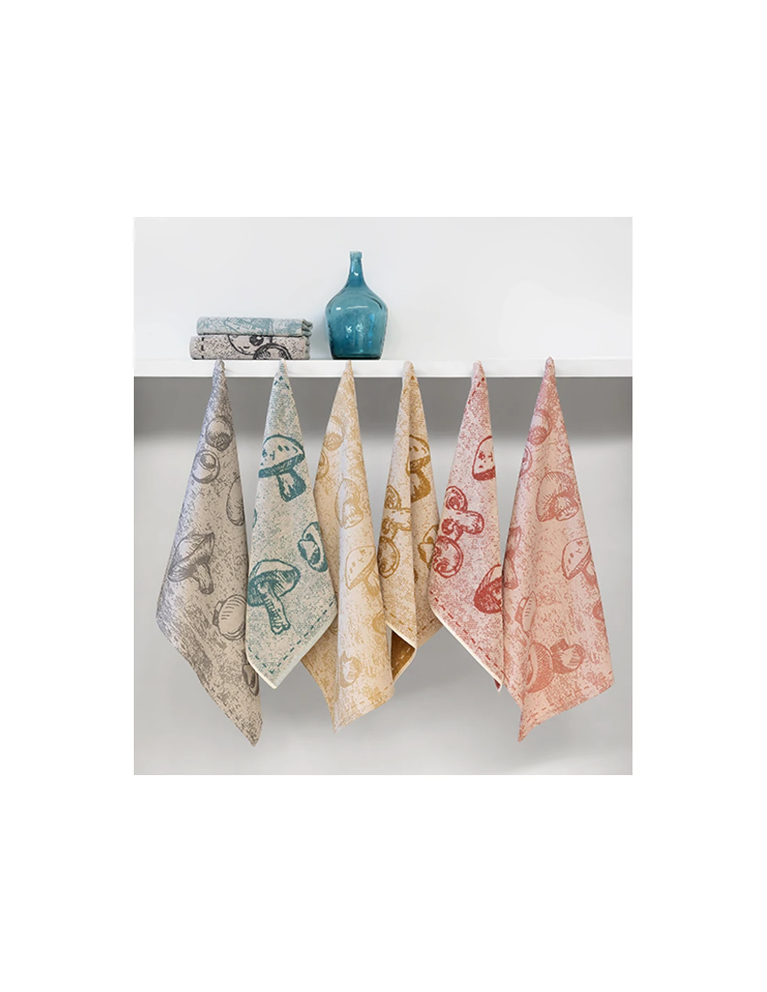 Línea Fungi con 4 colores a elegir, pack de 4 paños de cocina 100% algodón.