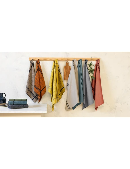 Línea Sette con 4 colores a elegir, pack de 4 paños de cocina 100% algodón.