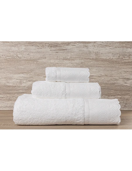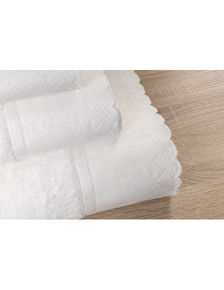 Juego de 3 toallas 100% algodón 600 gr./m2 - C/ Puntilla Luxor