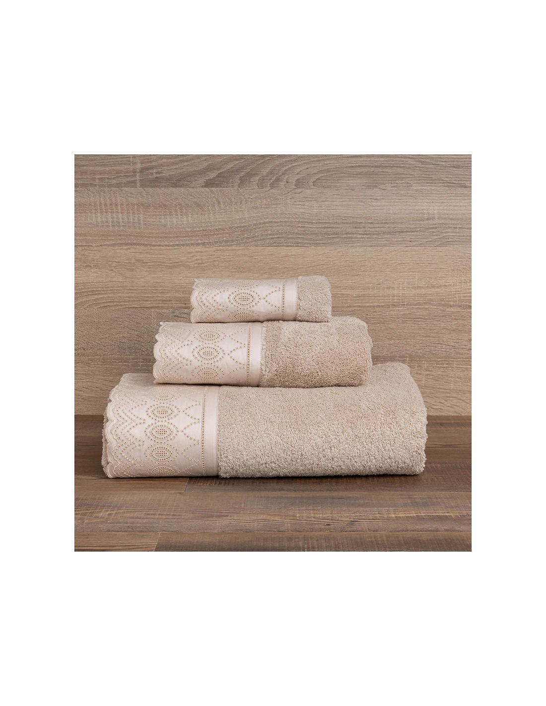 Juego de 3 toallas 100% algodón 600 gr./m2 - C/ Puntilla Luxor
