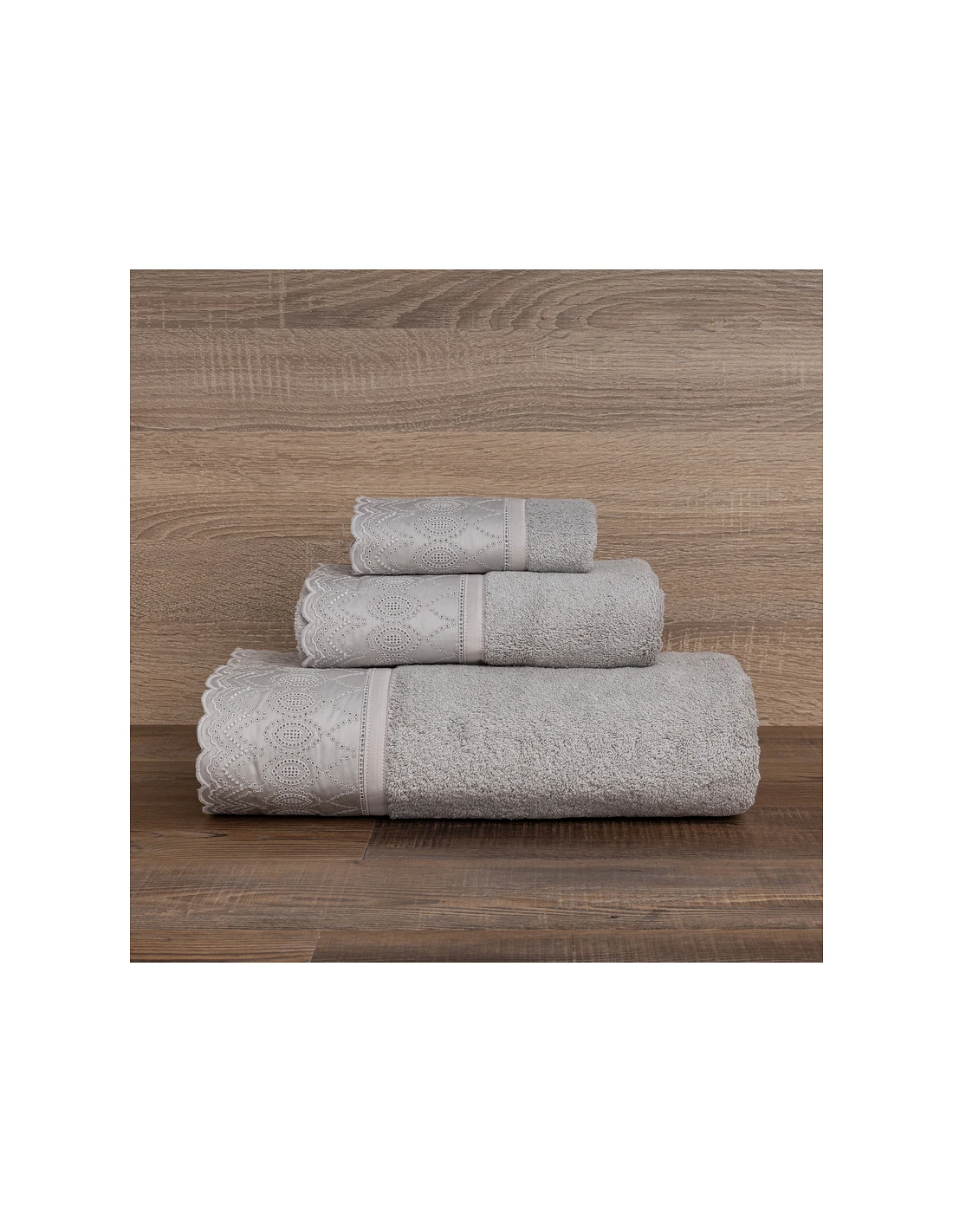 Juego de 3 toallas 100% algodón 600 gr./m2 - C/ Puntilla Luxor