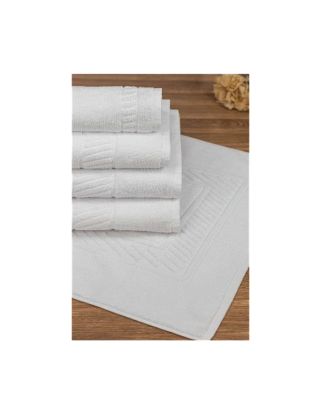 Toallas con 440 gr./m2, desarrolladas específicamente para hoteles, spa y centros de estética, por ello el dobladillo va cosido duplo, solidez al lavado hasta 90°, hilo duplo 24/2 rizo americano, estabilidad dimensional, processo viscosimétrico DPV = 1880, alta absorción y suavidad.