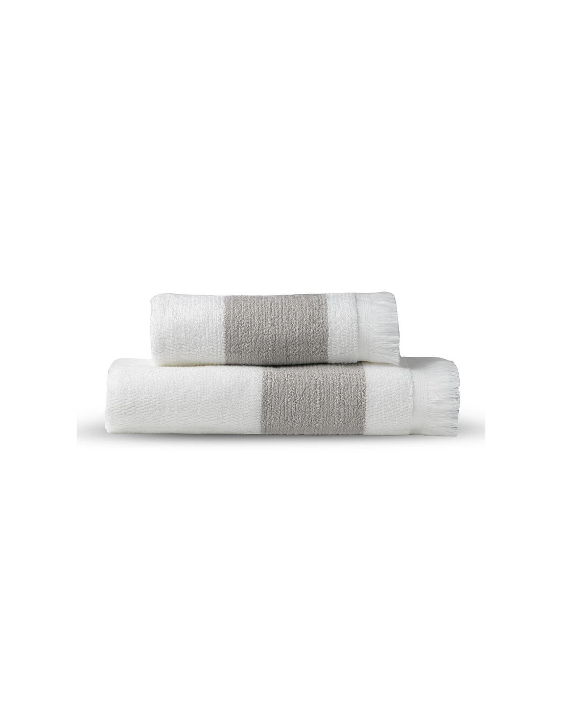 Línea Terry 95% algodón y 5% lino con 520 gr./m2, cenefa flecos, diseño exclusivo calidad lujo.