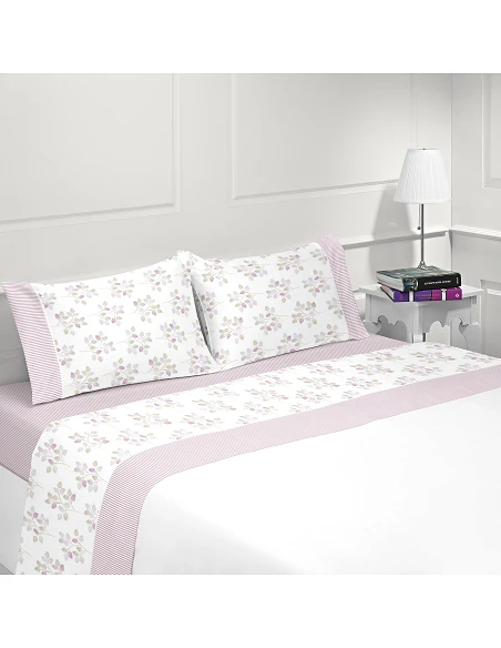 Jogos de lençóis 100% algodão, tons de rosa.