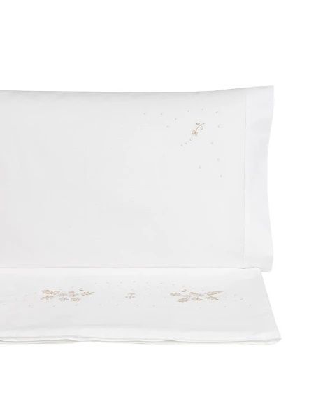 Cama 150 e 200 cm - Jogo de lençóis bordados da lixa - 100% algodão percal 200 fios
