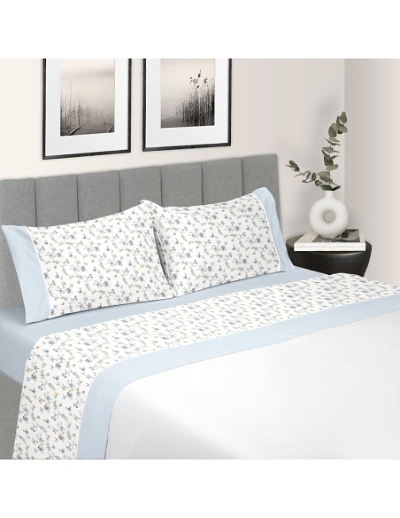 Lençol superior e fronhas com estampado digital e vivos