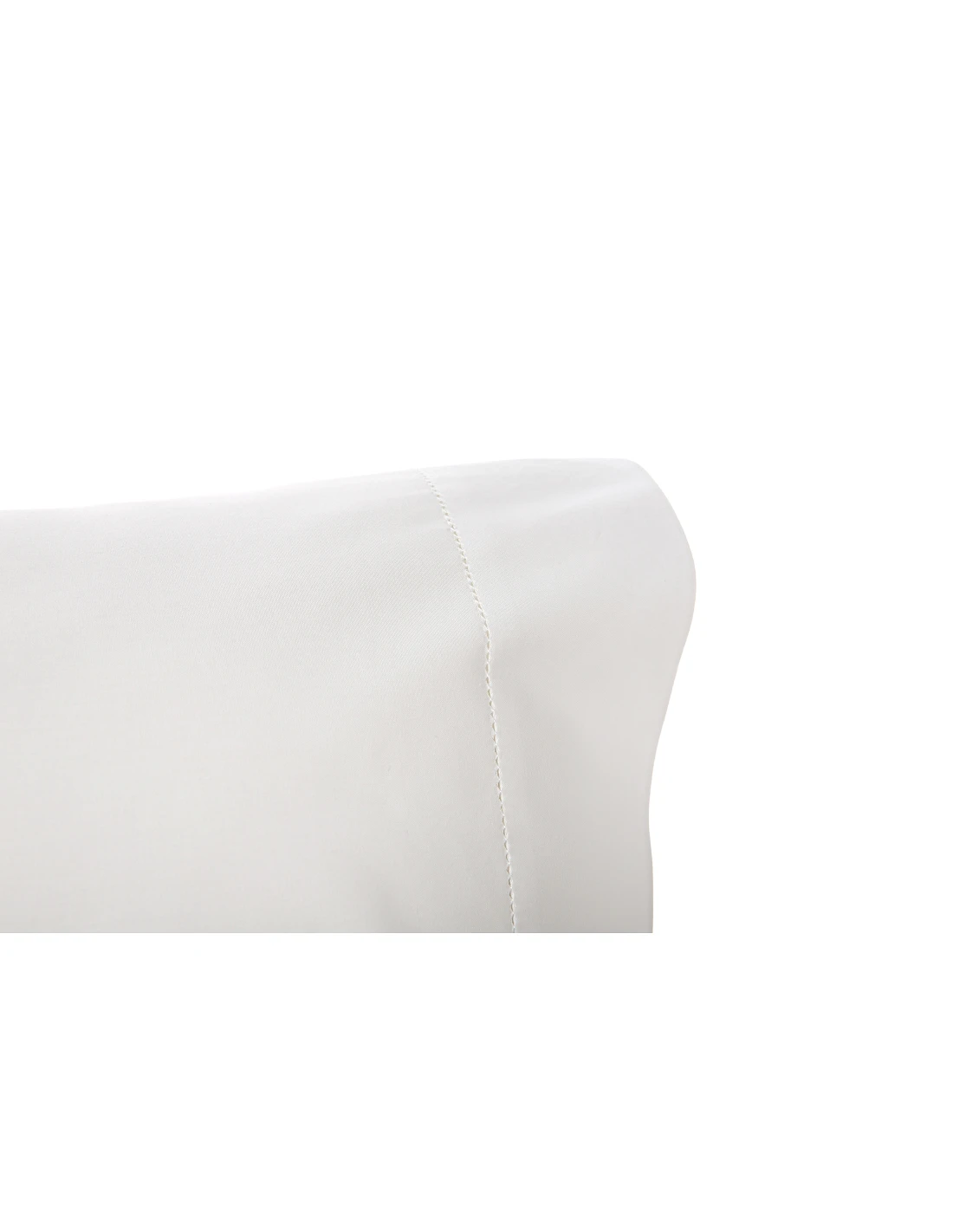Bainha aberta de meio ponto e Bordado no lençol superior e fronhas.