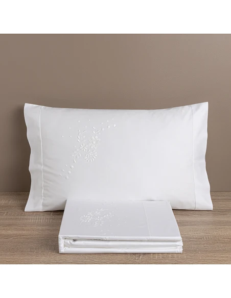 500 Fios - Jogo de lençóis 100% algodão cetim branco - Lenzuola Ricamate