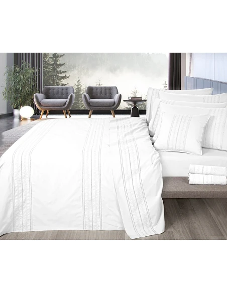Tecido algodão penteado percal 200 fios cor branco / branco.
