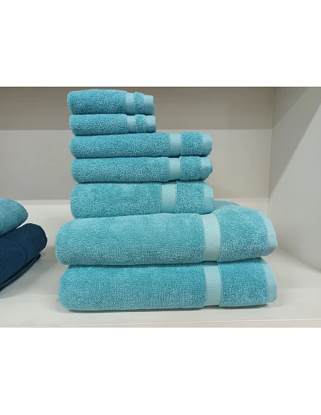 Toalha 100% algodão com 550 gr./m2, desenvolvida especificamente para hotéis, spas e centros de estética, com costura lateral dupla, solidez à lavagem a 60°, fio duplo 24/2 torcido.