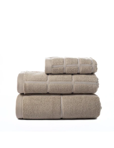 Jogo de 3 toalhas, felpo cor taupe.