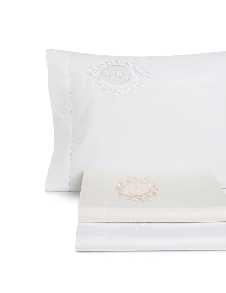 Elegante e sofisticada colecção Guipur, fabricada em atelier com grande atenção aos detalhes, para interiores com personalidade e personalizáveis. Tecido algodão penteado percal de 200 fios.