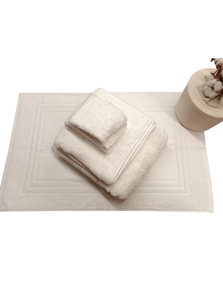 Toalha desenvolvida especificamente para hotéis, spas e centros de estética, com costuras laterais duplas, solidez à lavagem a 60°.