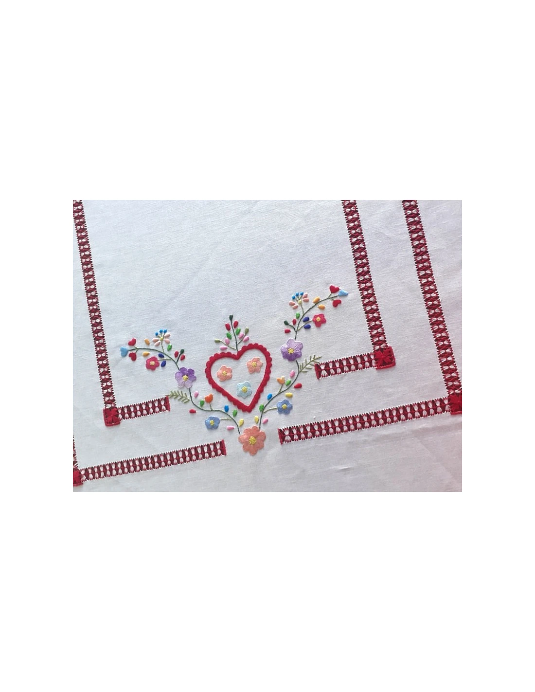 170x270 Toalha de mesa de linho bordada a mão - Namorados