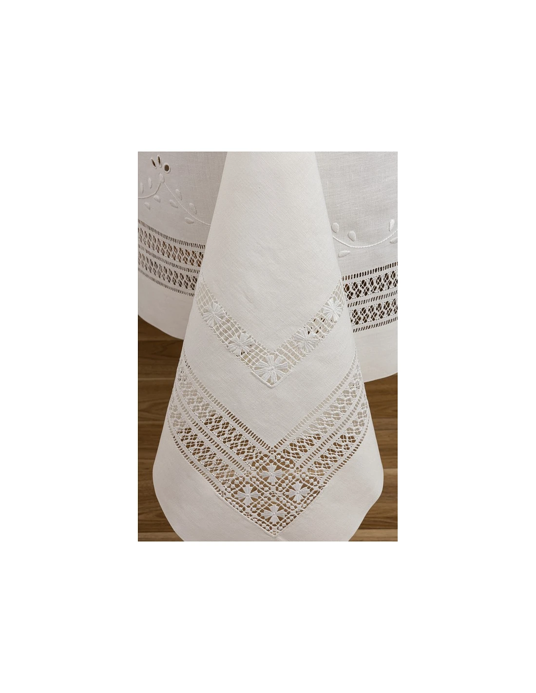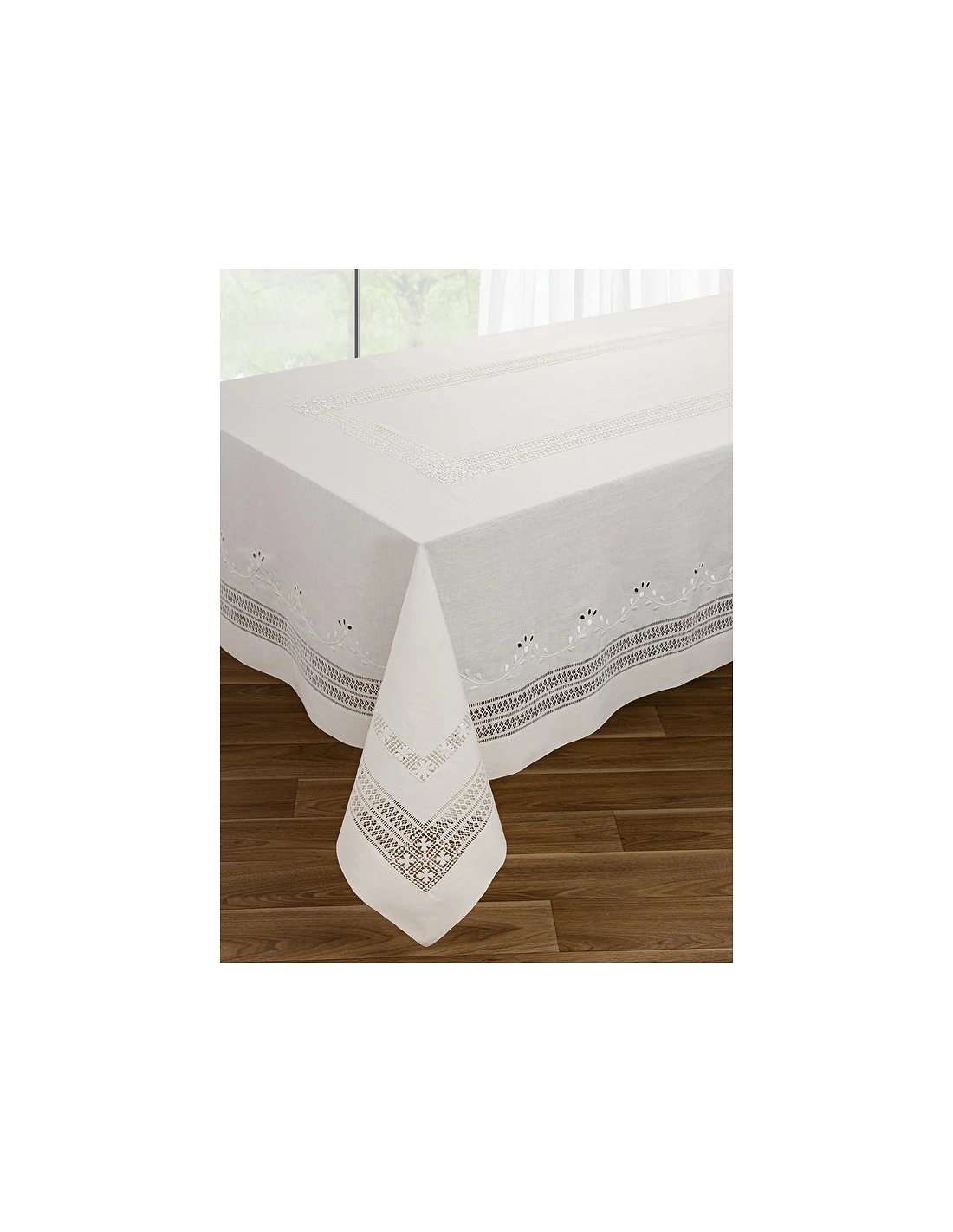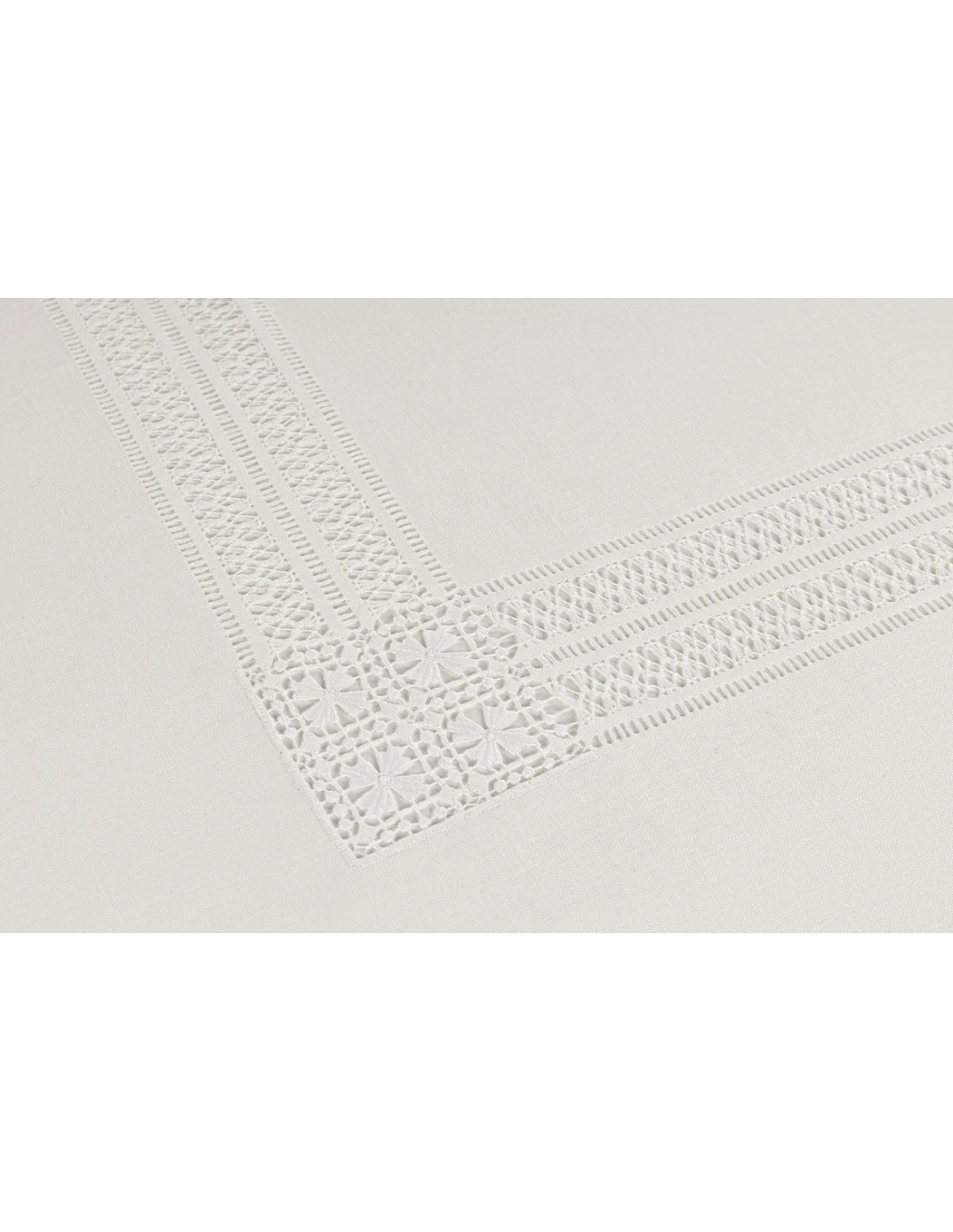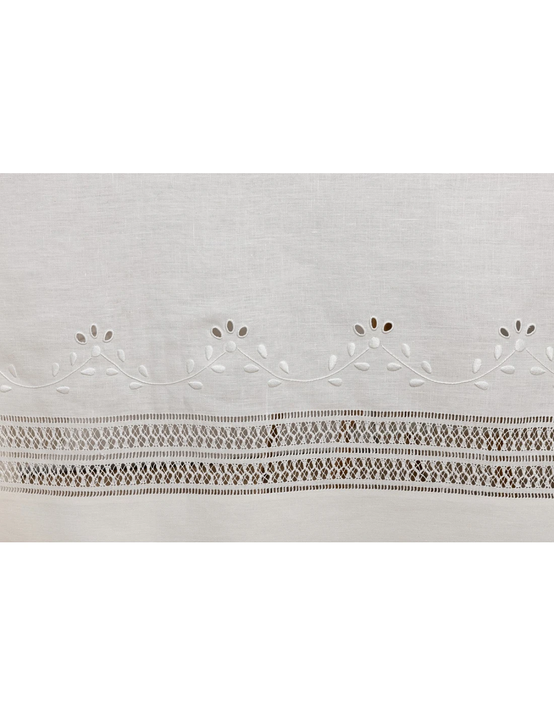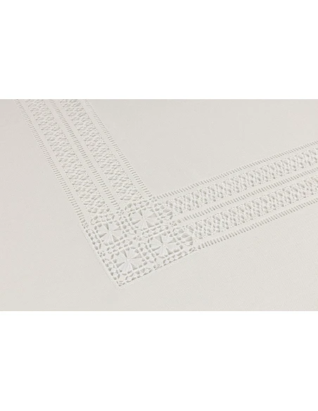 5 Bainhas bordadas a toda a volta da toalha, mais bainha de flores intercalada nos cantos.