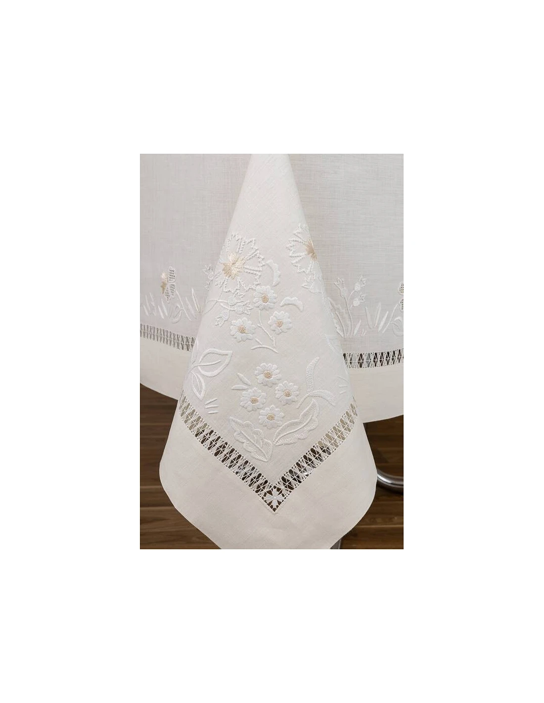180x305 cm - Toalha de mesa 100% linho bordada a mão + 12 guardanapos 50x50 cm