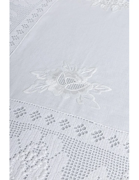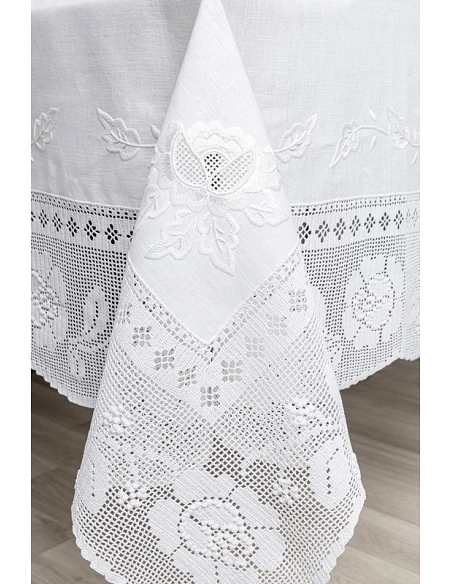 170x270 cm - Toalha de mesa de linho bordada C/ crochê a mão