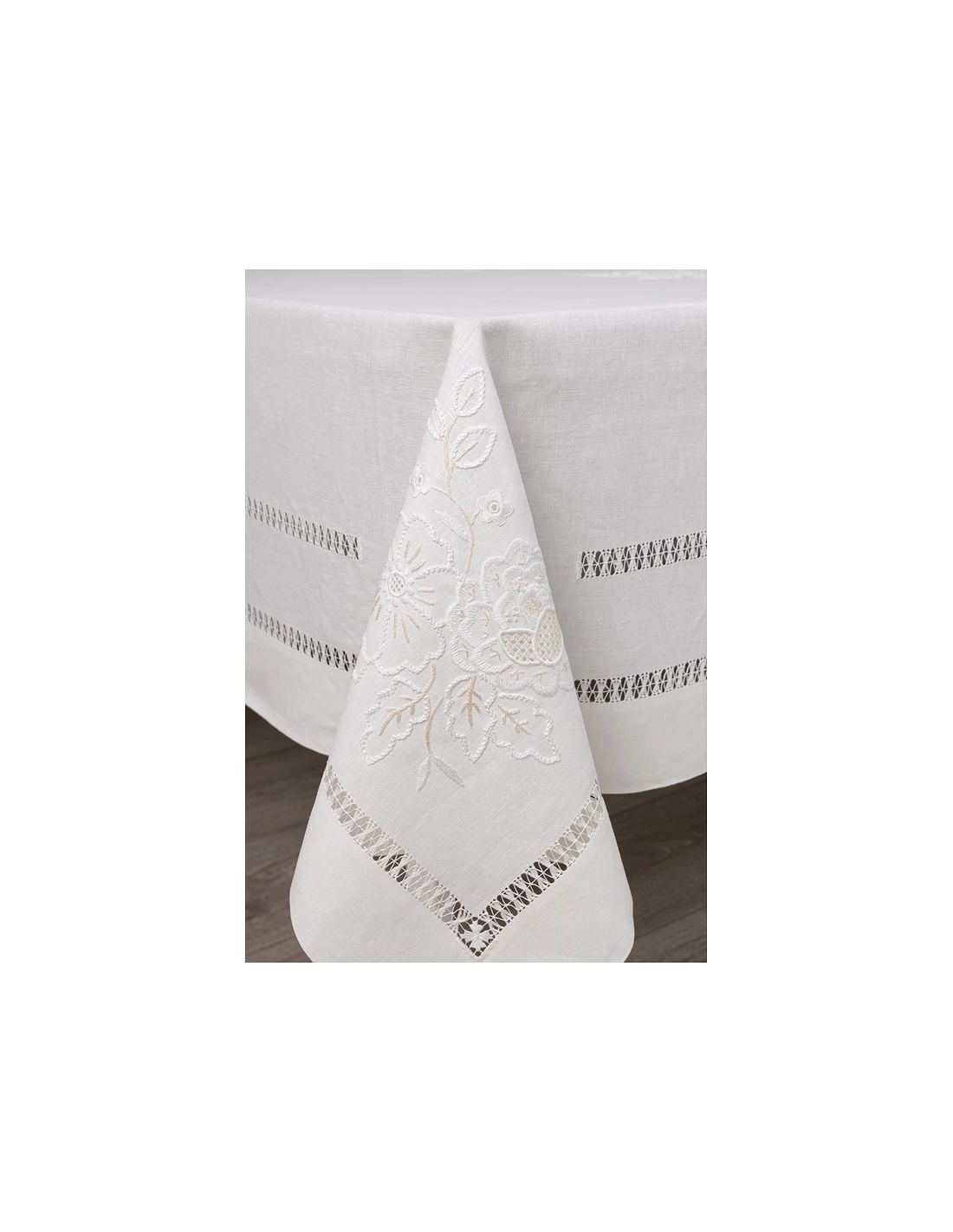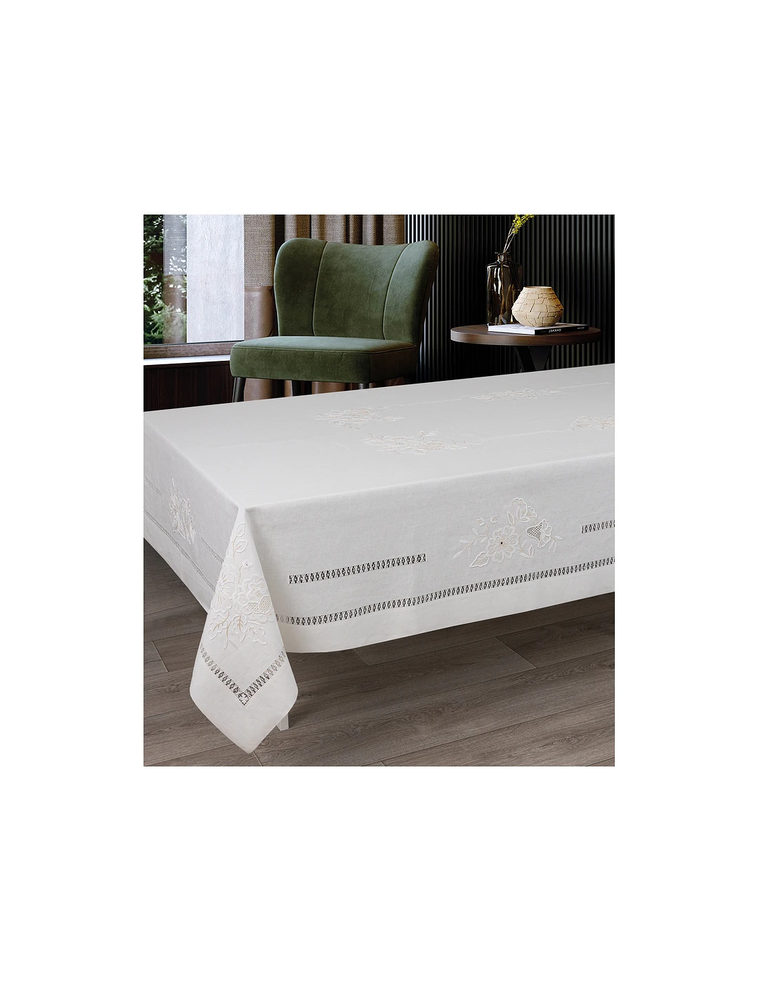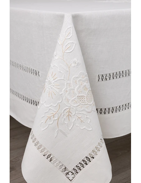 180x360 cm - Toalha de mesa 100% linho bordada a mão